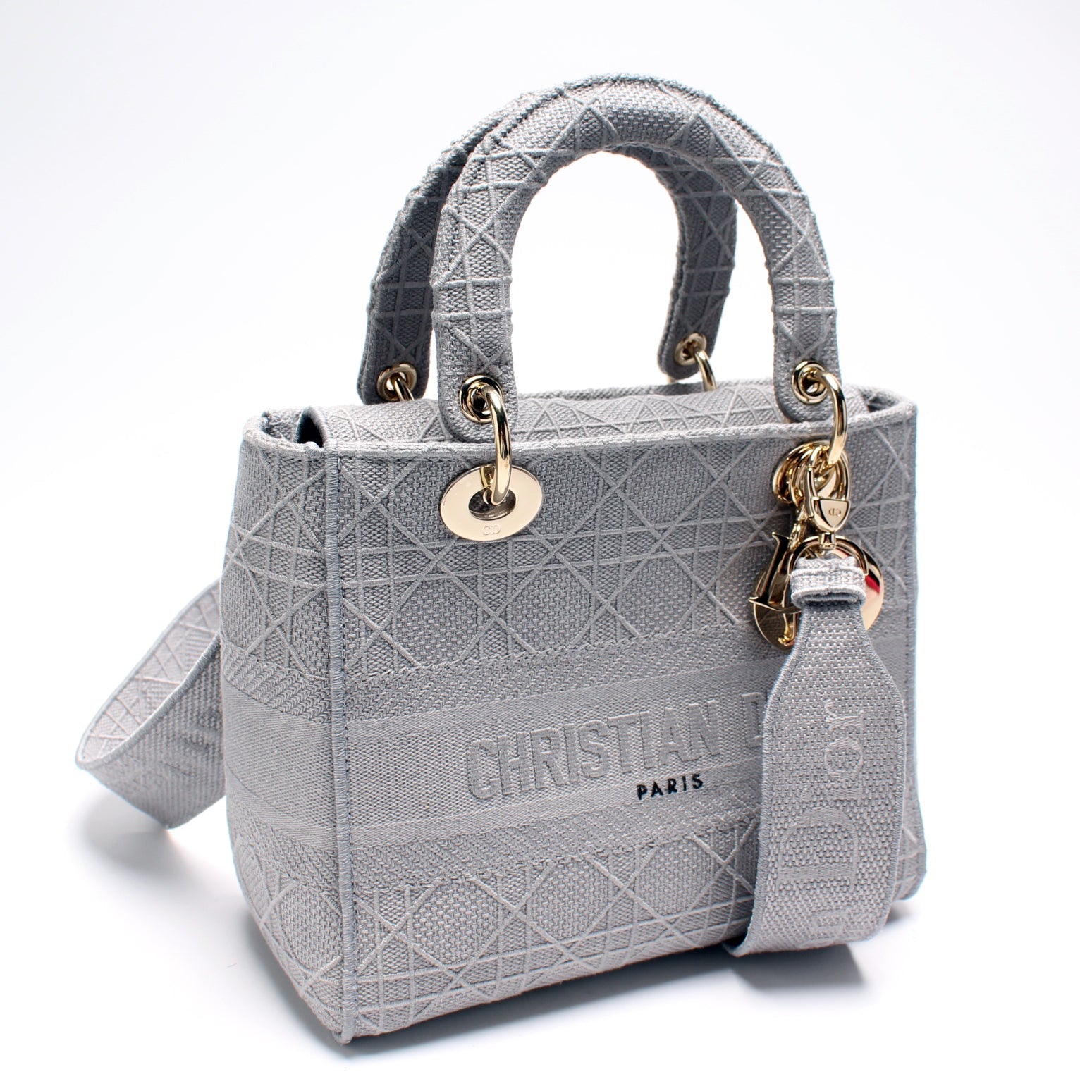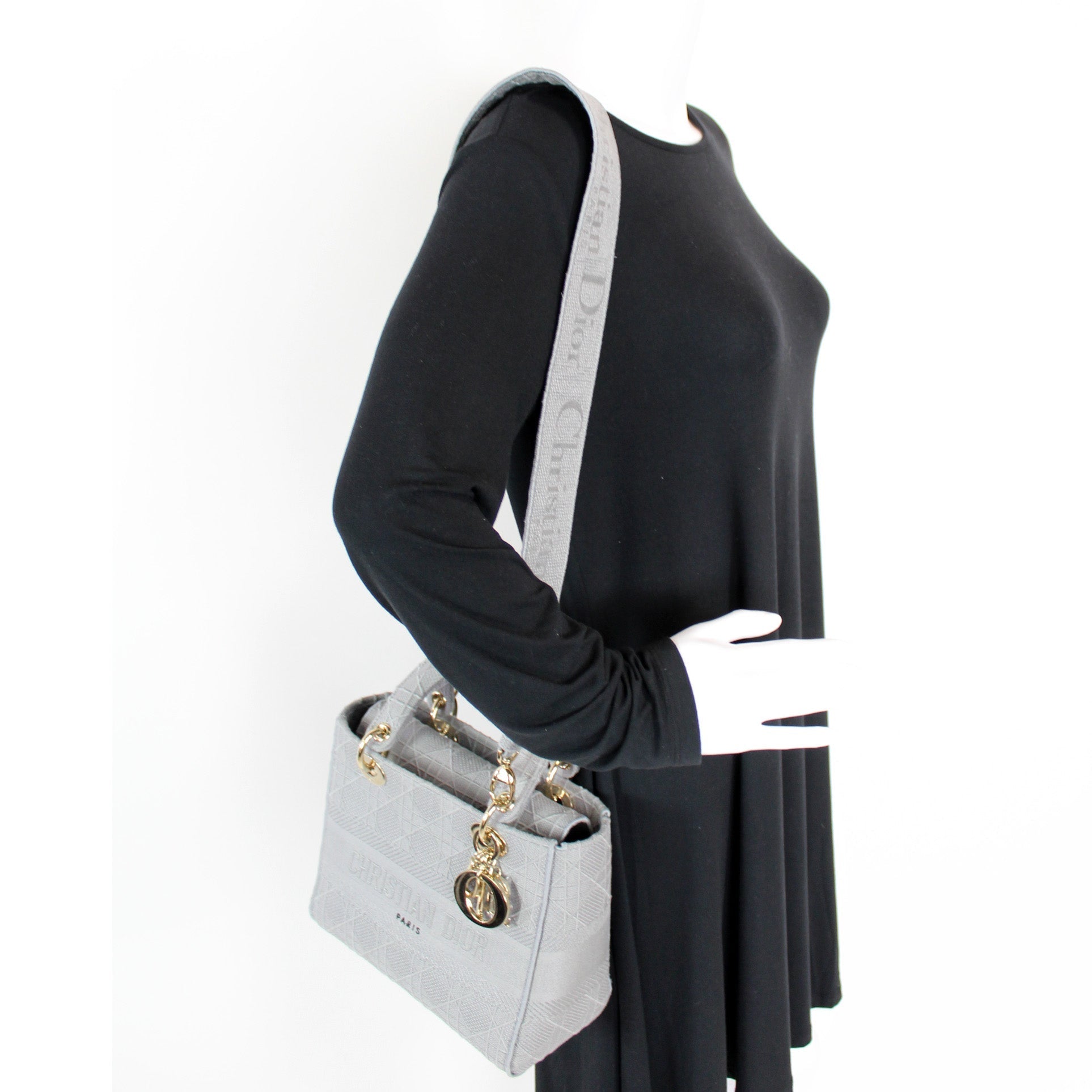 This Christian Dior D-Lite Cannage Mediumis eye catching bag. The exterior is in the classic Christian Dior Embroidered canvas.