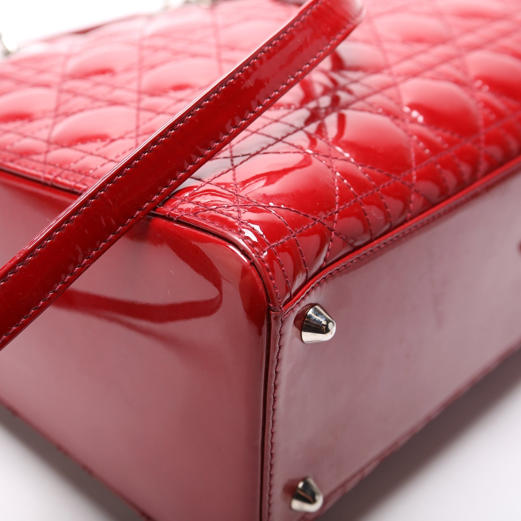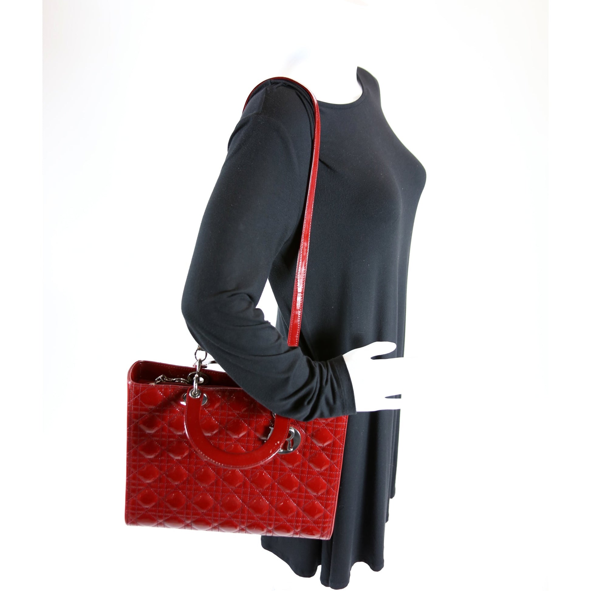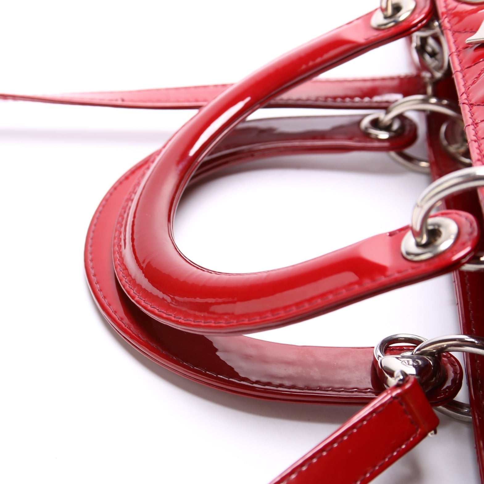 This Lady Dior Largeis eye catching bag. The exterior is in the classic patent leather.