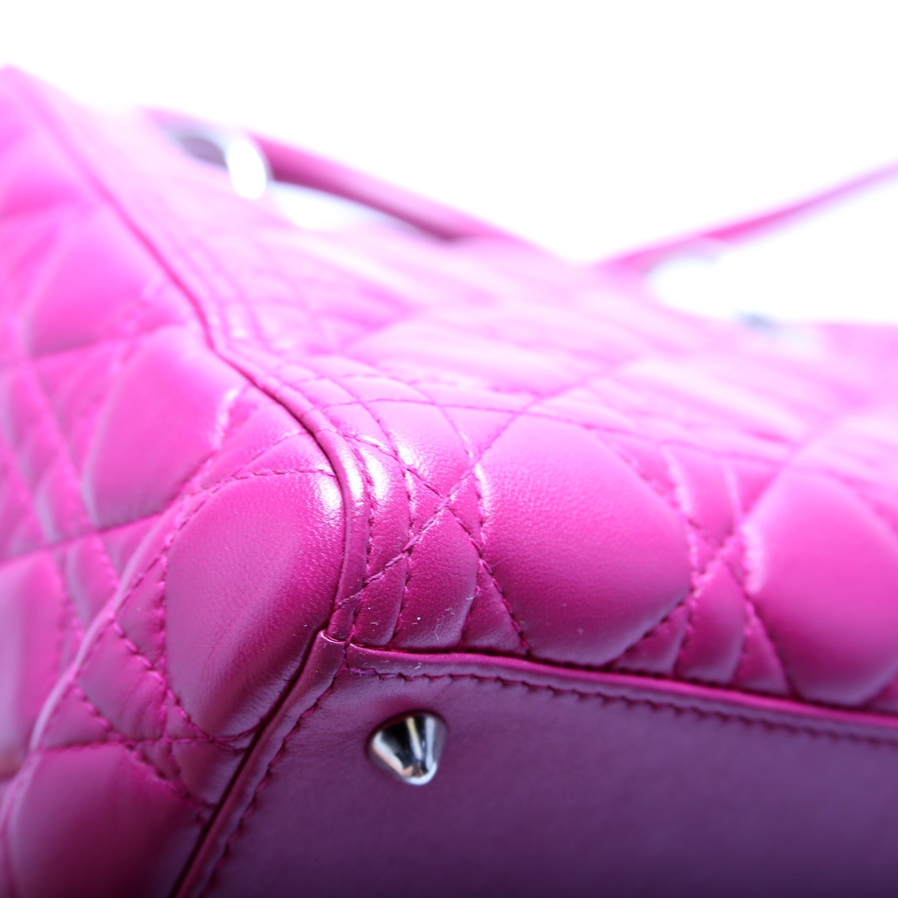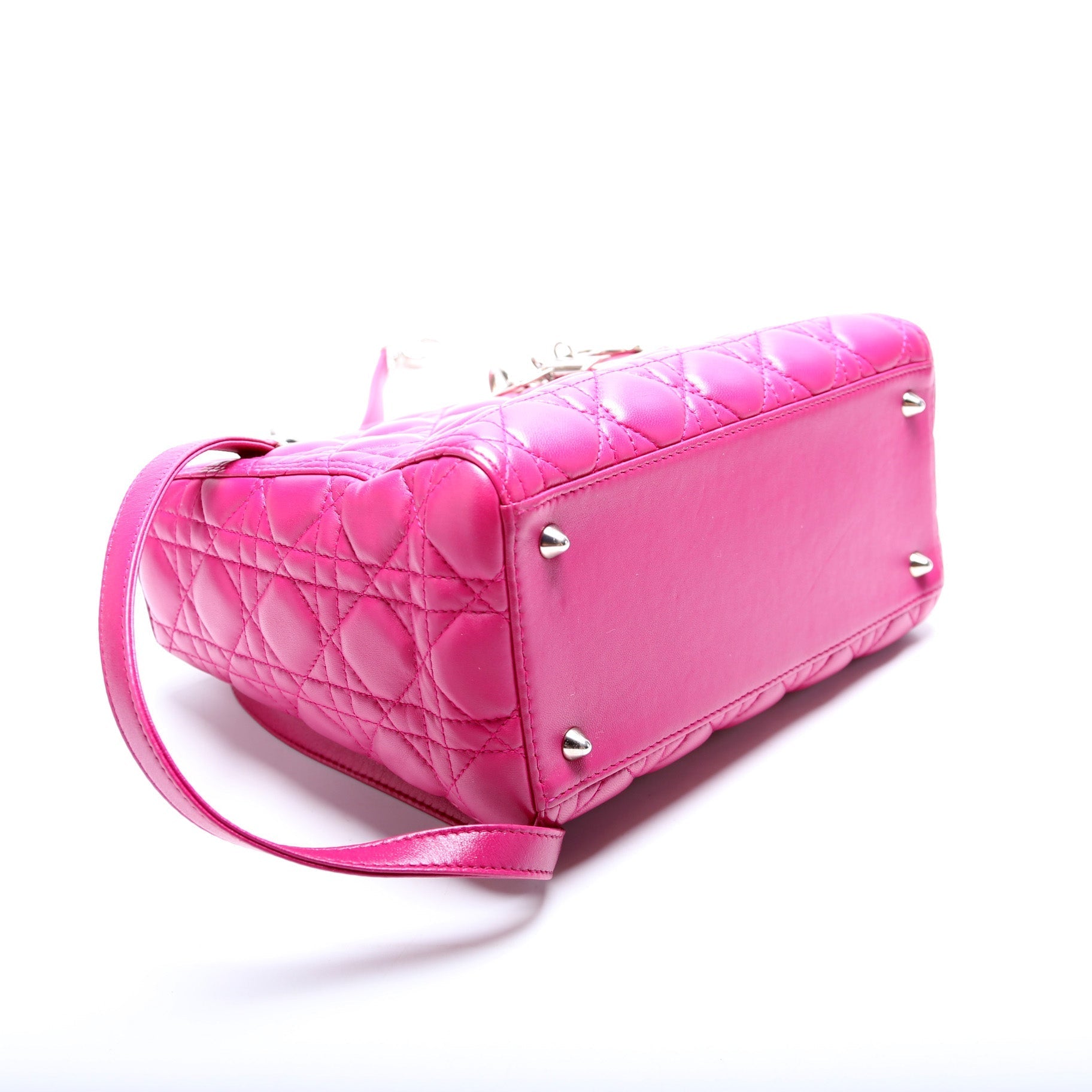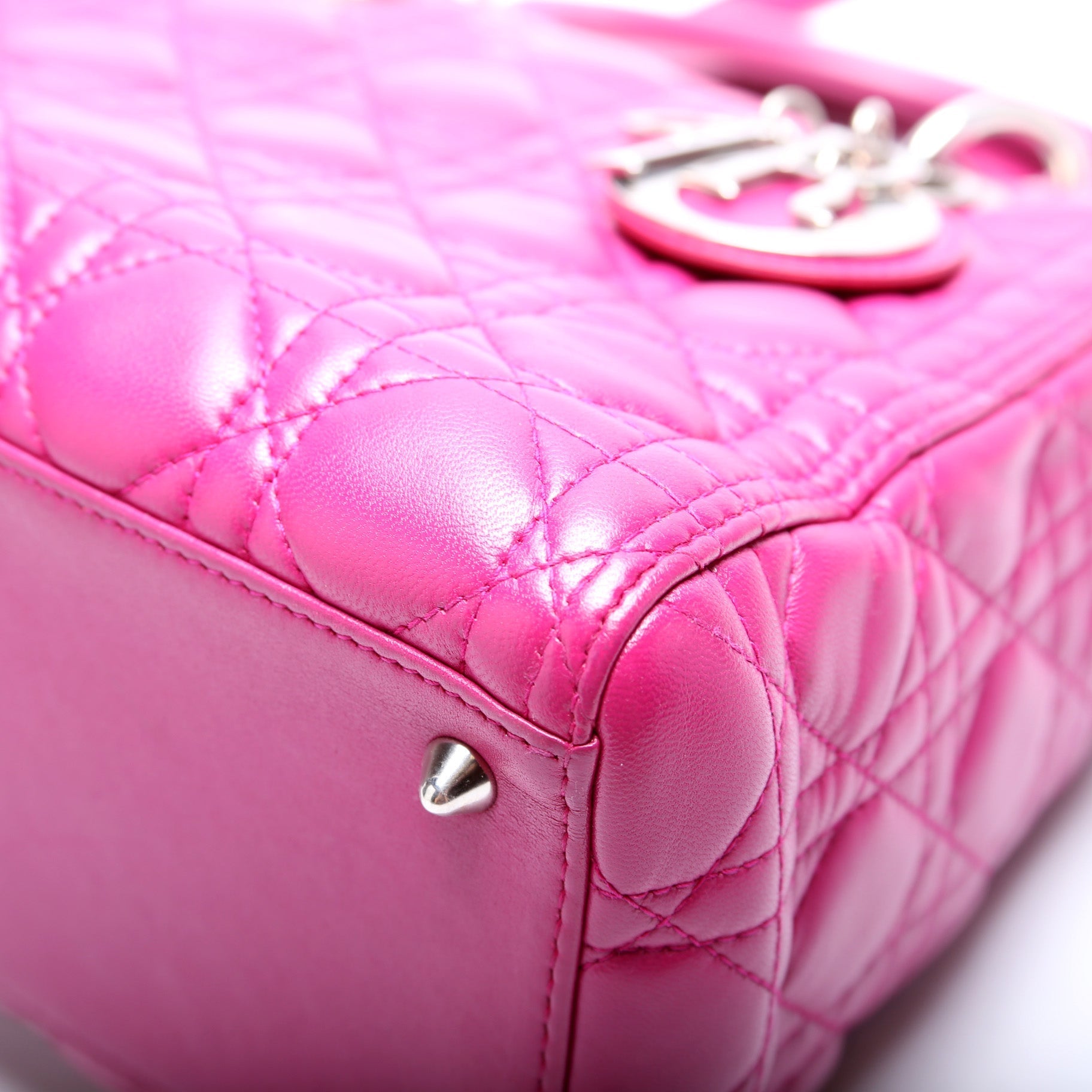 This Christian Dior Lady Dior Mediumis eye catching bag. The exterior is in the classic Christian Dior Lambskin leather.