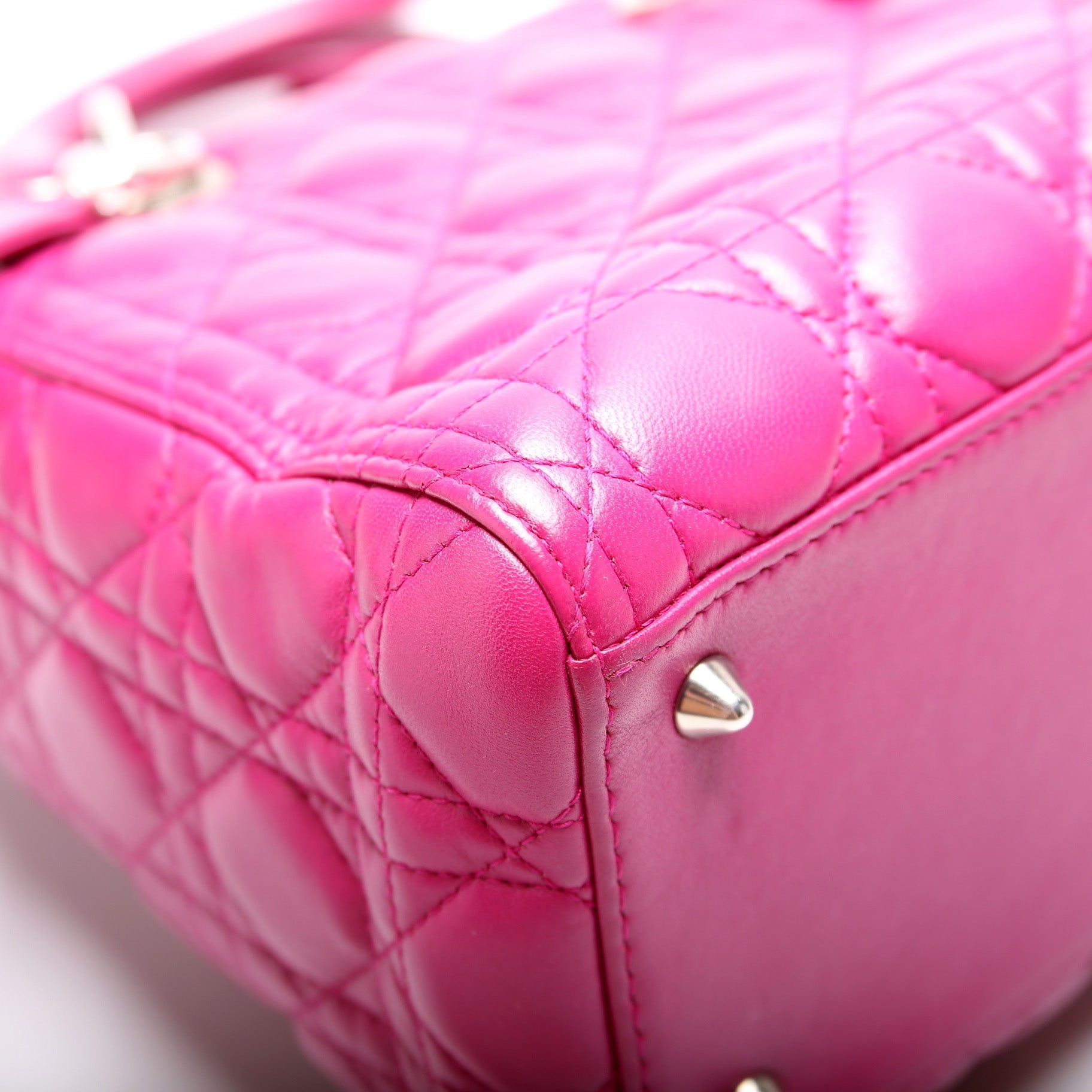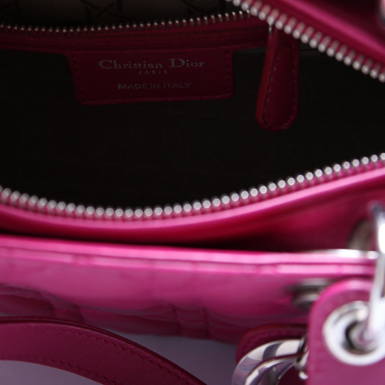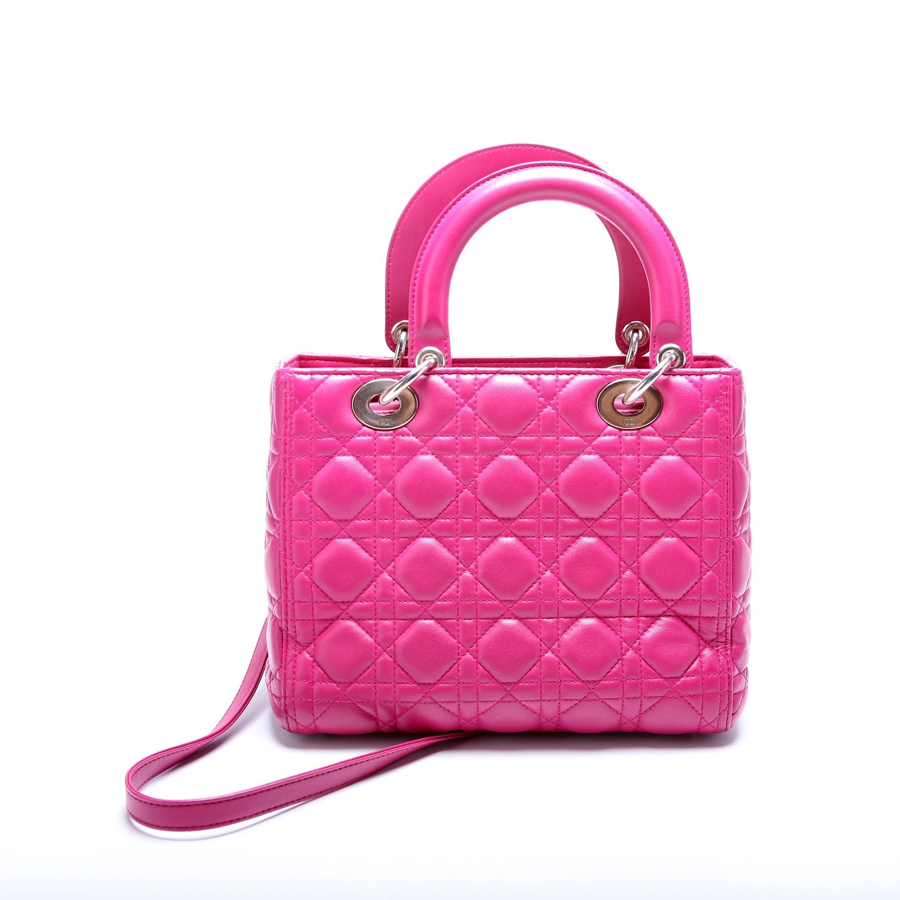 This Christian Dior Lady Dior Mediumis eye catching bag. The exterior is in the classic Christian Dior Lambskin leather.