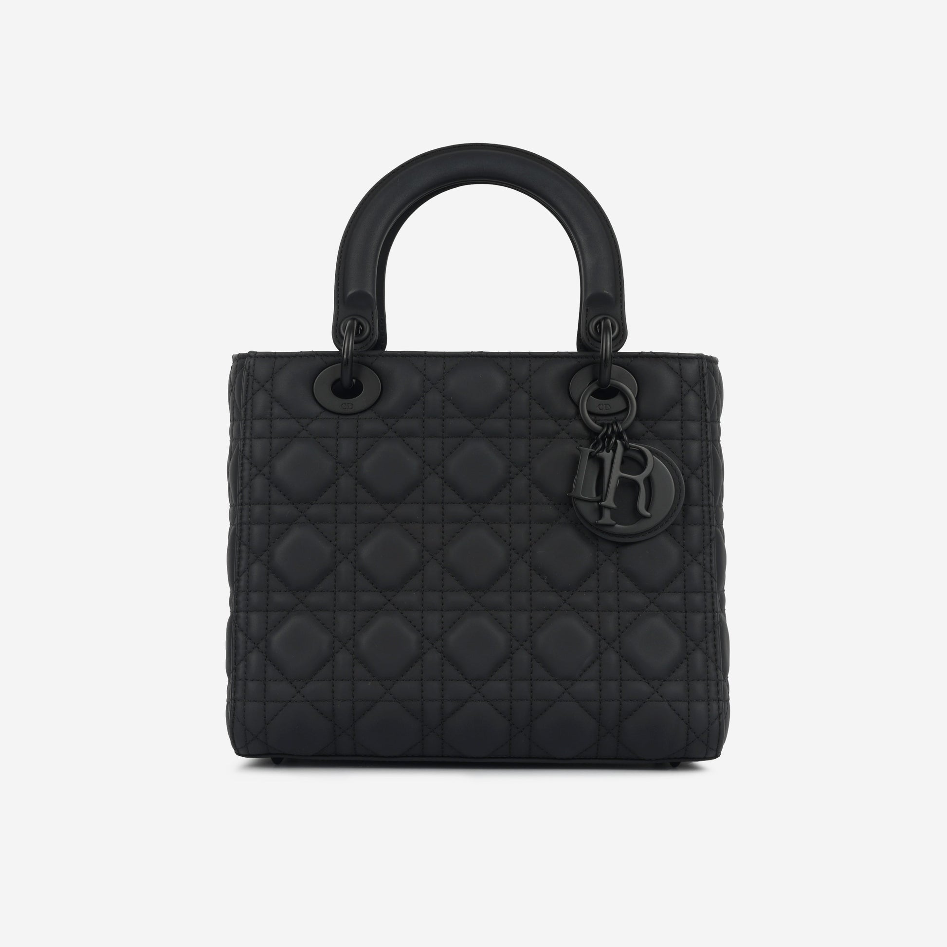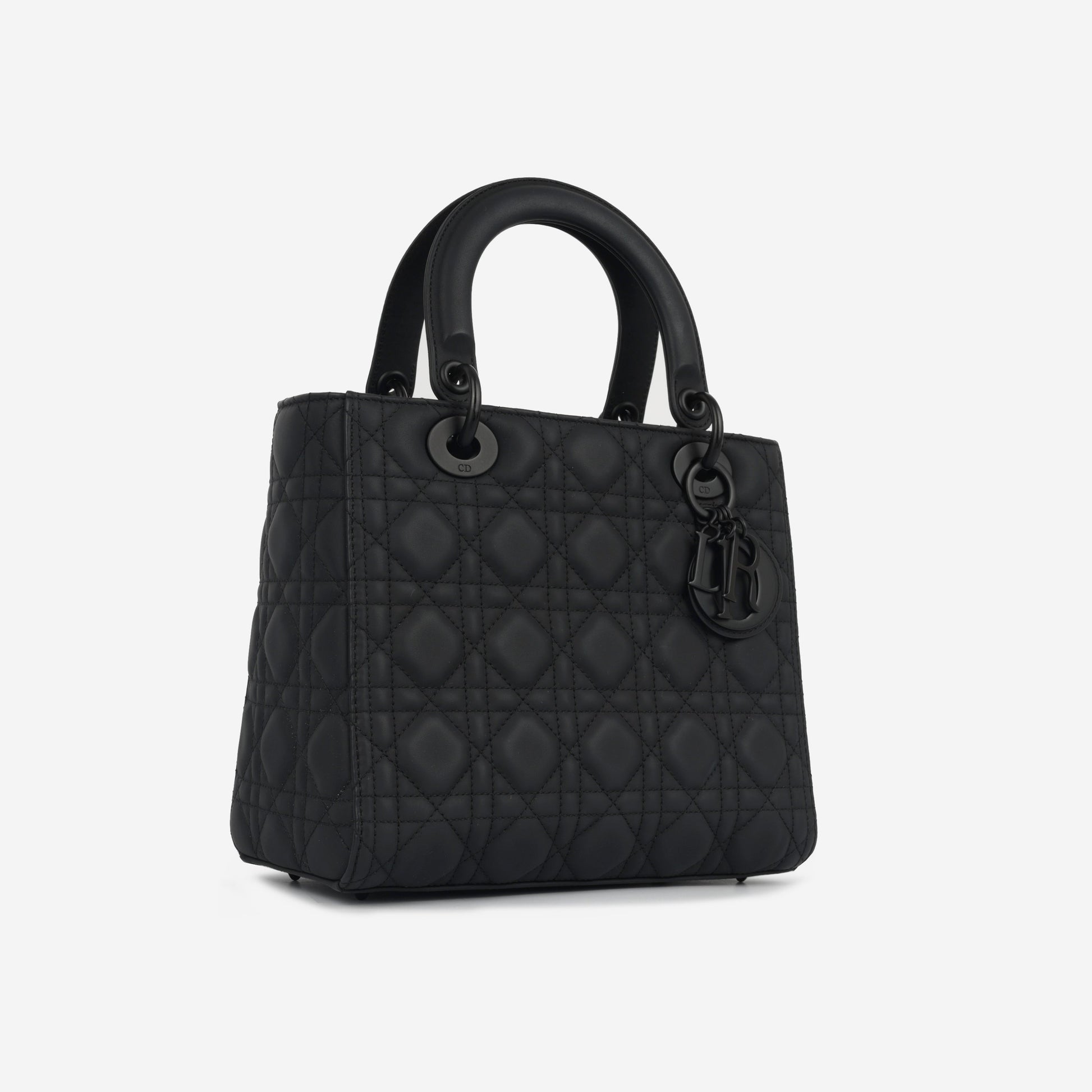 The Lady Dior My ABCDior bag epitomises Dior's vision of elegance and beauty. Sleek and refined, this timeless style is crafted in luxurious black ultramatte calfskin with intricate Cannage stitching, creating the instantly recognisable quilted texture. The bag is adorned with tonal metal D.I.O.R. charms, enhancing its silhouette with an elegant allure.