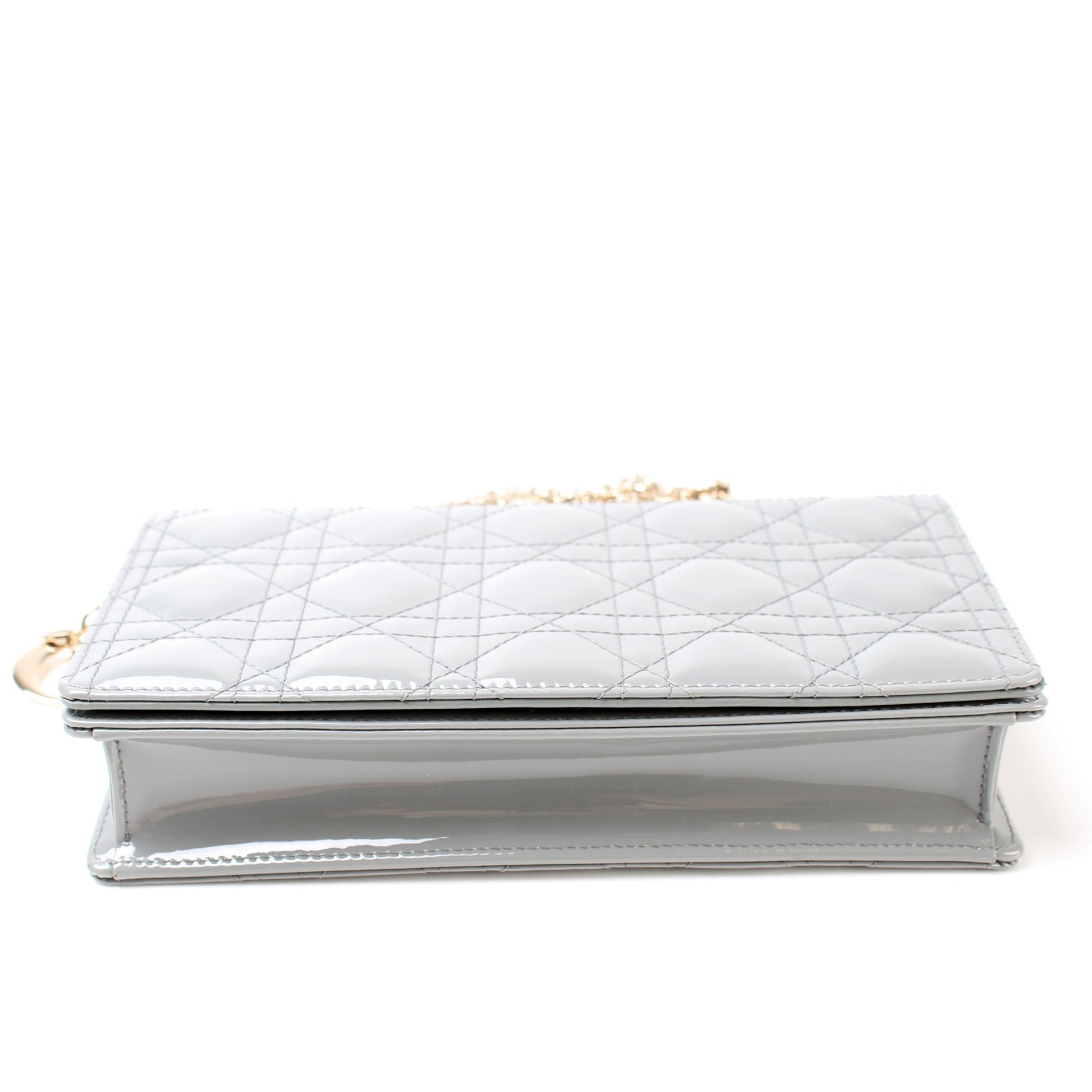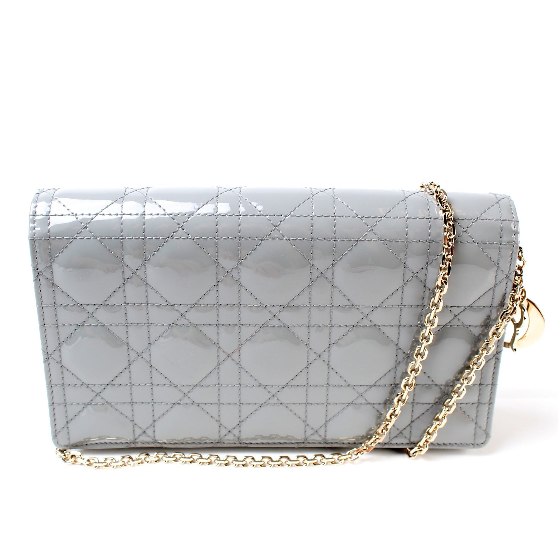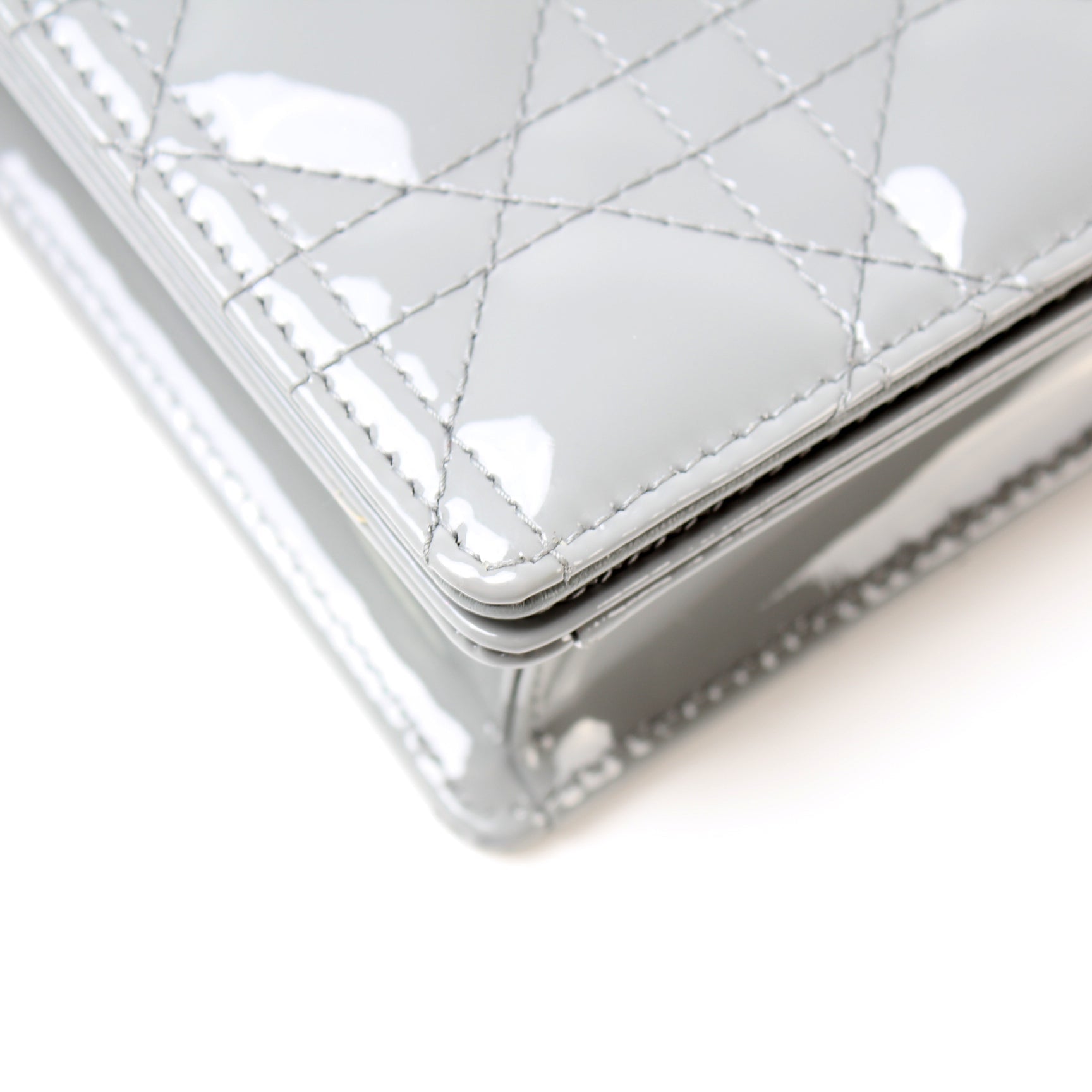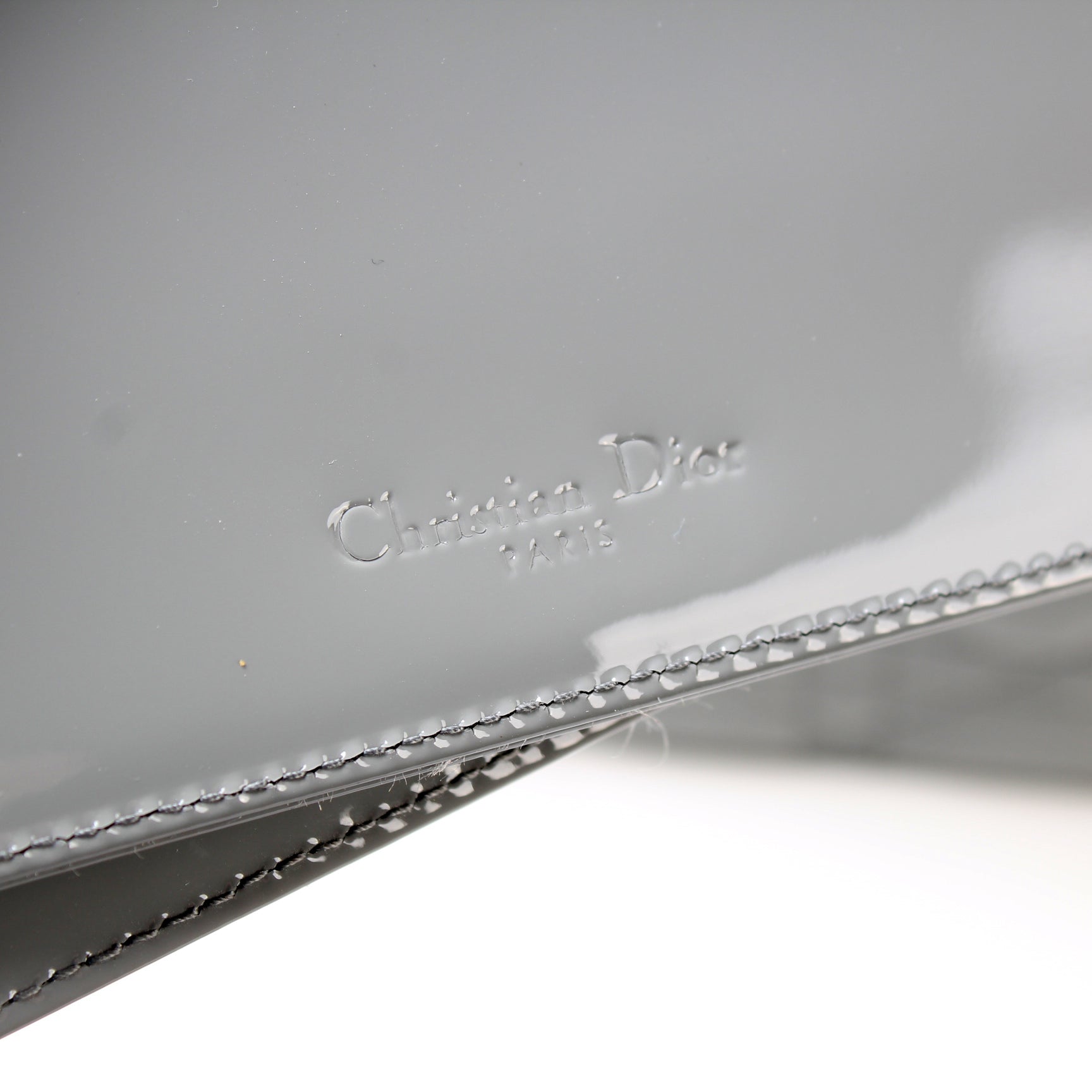 This Christian Dior Lady Dior Pouch Clutchis eye catching bag. The exterior is in the classic Christian Dior patent Cannage leather.
