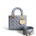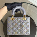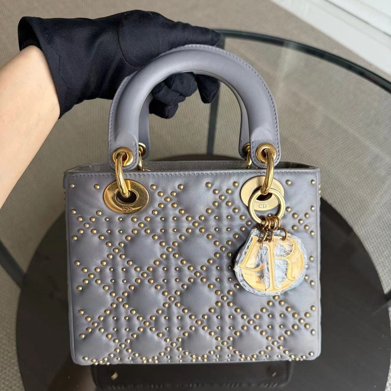 Dior Small Lady Shoulder Bag - Studded Cannage Grey Gray Golden Hardware