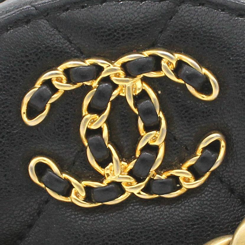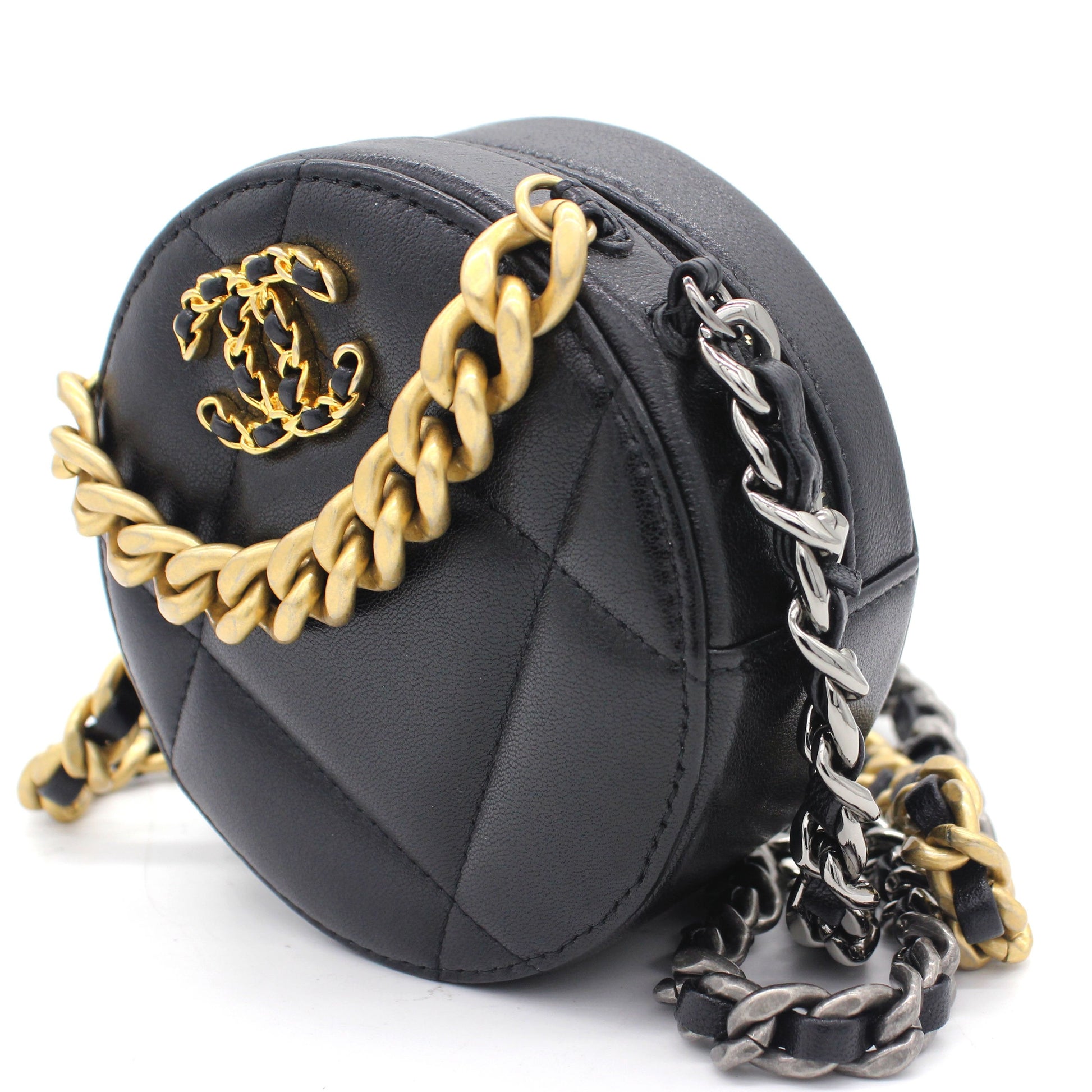 Chanel Lambskin Quilted 19 Round Clutch With Chain Black