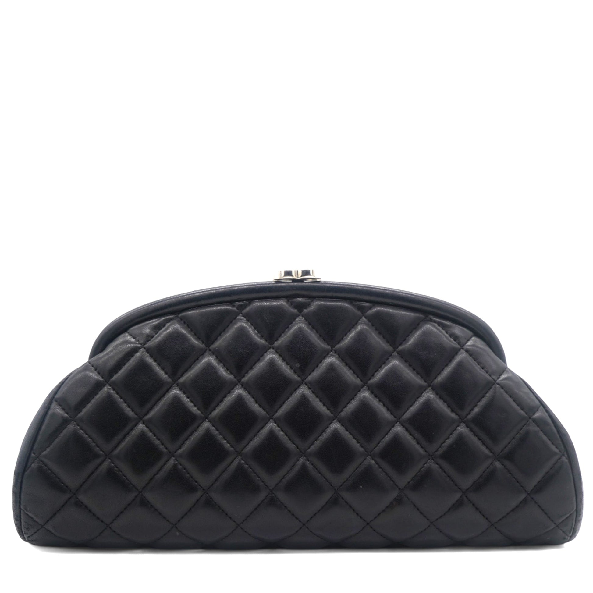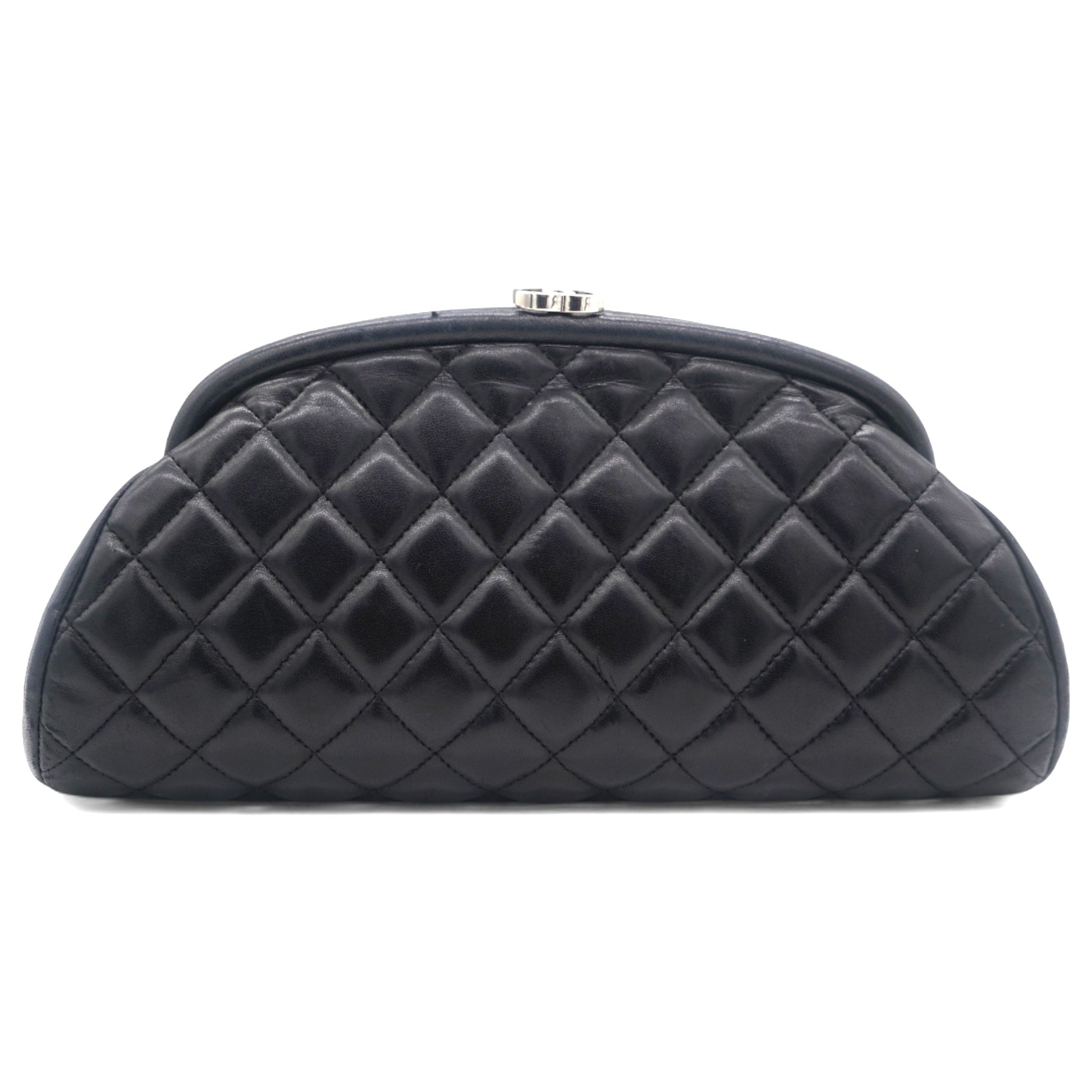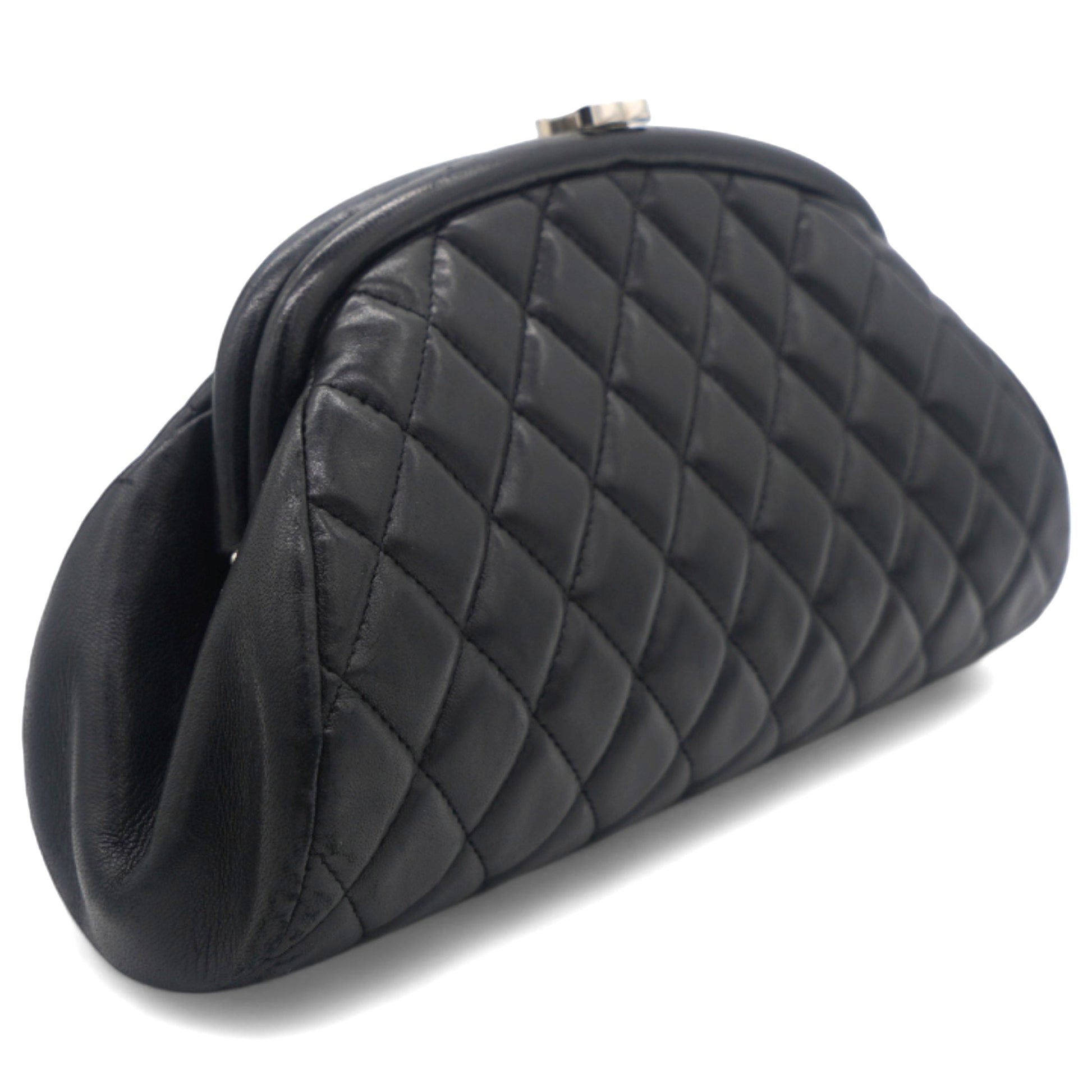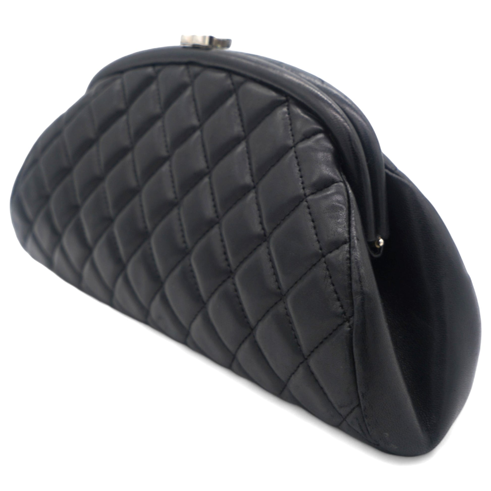 | This is an CHANEL Lambskin Quilted Timeless Clutch in Black. This stunning clutch is beautifully crafted of black diamond quilted lambskin leather. The clutch features a top bar and kiss lock in the form of a polished silver Chanel CC logo. This opens to a black leather interior with a zipper pocket. | Material: Leather Lining: Leather Hardware: Silver color finish metal Accessories: None Serial Number: 12068843 Production Year: 2008 | ![]() |