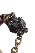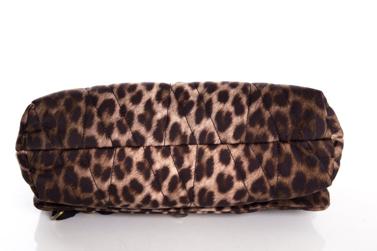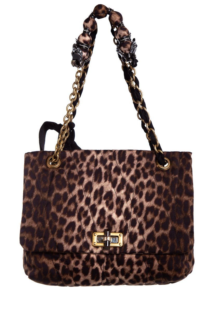 Lanvin Brown, beige and black cheetah print quilted nylon Happy bag with gold-tone hardware, dual chain-link shoulder straps, navy nylon lining, single interior zip pocket and front flap turn-lock closure. This item is in excellent condition.