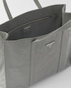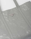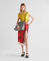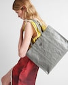 This bag with casual, everyday allure is made of glossy nappa leather with a natural finish. The handmade wrinkled effect contrasts with the concept of a rigid construction, reinterpreting an everyday object that can be worn without constraints. Presented for the Spring Summer 2023 collection, the accessory is decorated with the enameled metal triangle logo.