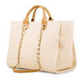 Don't worry girls, we had the same reaction in case you're wondering if you're the only one with their jaw on the floor. Yes, this bag is real and yes, it is for sale - and to say we're obsessed would be an understatement. Carefully crafted from luxurious Cream fabrics and imitation pearls in silver hardware, the Chanel Deauville handbag is just...beyond stunning, to say the very least. The Deauville is undoubtedly the holy grail of luxury totes. Spacious enough to hold literally everything one would need throughout their day, the Deauville is suitable for travelling, a day at the beach or just basic daily usage. Need to carry your laptop and papers with you to work? The Deauville can easily hold it. Your textbooks for all you international students? No problem. Your dog? Your toddler? Your husband when you don't feel like dealing with him anymore? Girl, go ahead. Jokes aside, the Deauville is an absolute must-have for any woman with a love for luxury and a lot to carry.