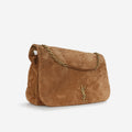 The Saint Laurent Jamie 4.3 Shoulder Bag is a fresh take on a classic design, named after the iconic model Jamie Bochert. Crafted from rich brown suede, this oversized bag combines luxurious texture with the bold, signature details that define Saint Laurent’s iconic style. Featuring the Le Maillon chain and the instantly recognisable YSL monogram, it maintains the house’s timeless aesthetic while offering a modern, oversized silhouette.