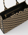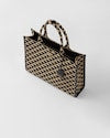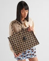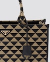 Introduced for the first time on trunks designed by Mario Prada, the Prada triangle expresses uniqueness and modernity through its universal, minimalist shape that is reinvented in a different way each season. Here, the geometric design is transformed into a sophisticated yet modernist pattern that plays with contrasting colors and decorates this sleek tote bag. Details in the brand's iconic Saffiano leather embellish the design.