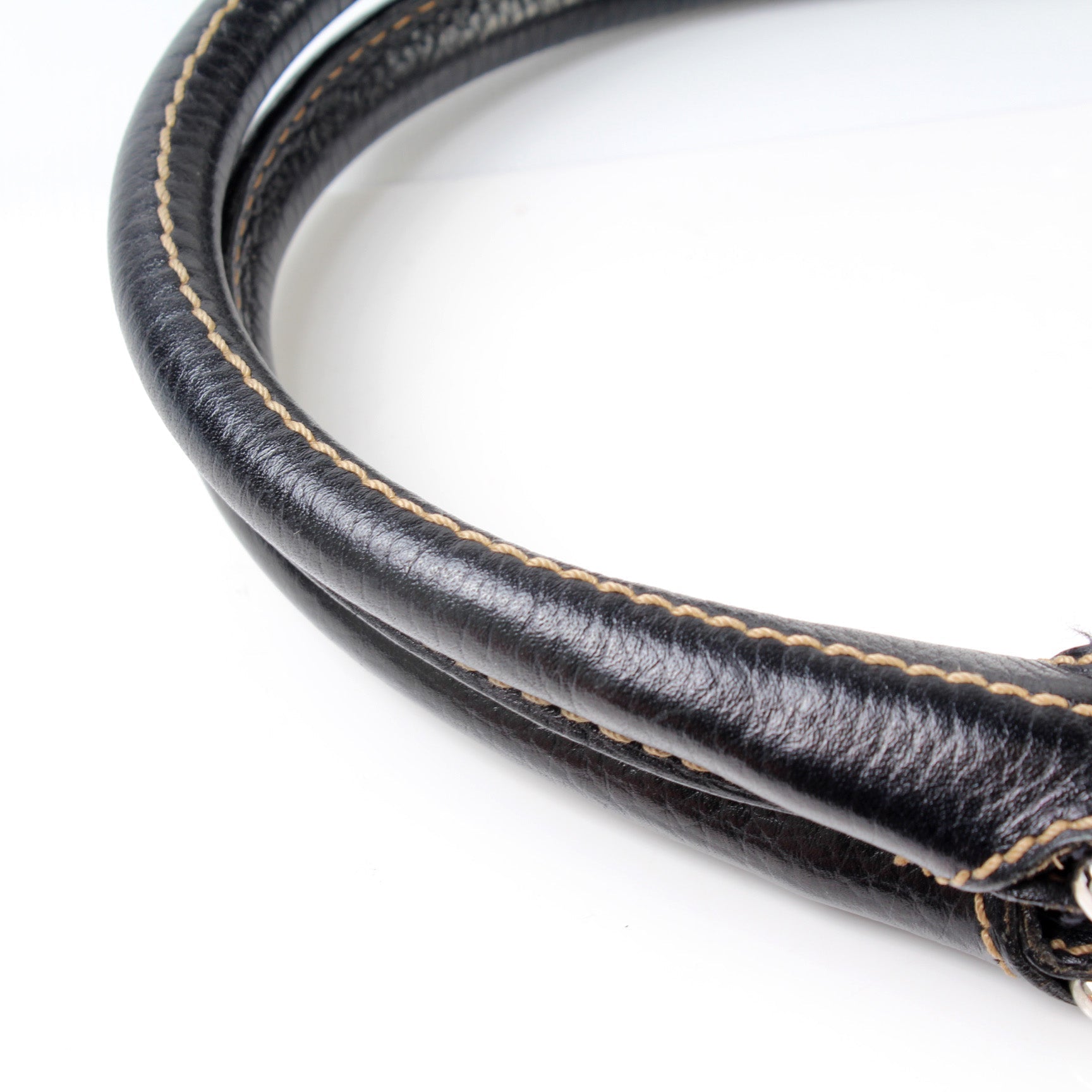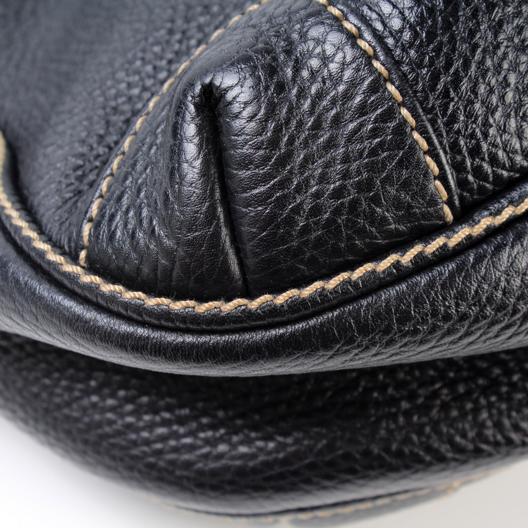 Exterior: The exterior leather is free of any rips or cracks. The corners show minor wear.