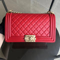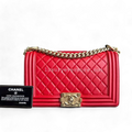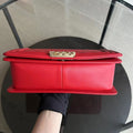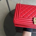 This stunning Boy Old Medium 25CM in Quilted Lambskin Red with Golden Hardware is a rare find from the coveted Series 21. Chanel's iconic design paired with luxurious lambskin makes it a timeless piece. Priced at just 2950 SGD, this is an opportunity not to be missed for collectors and fashion enthusiasts alike.