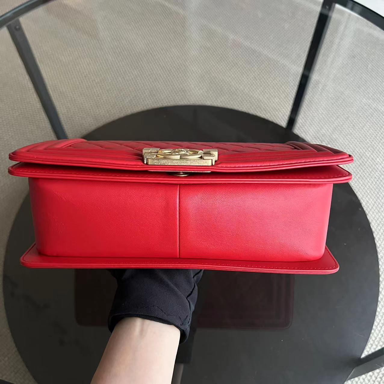 Le Boy Old Medium 25CM Quilted Lambskin Red Leboy Golden Hardware Series 21