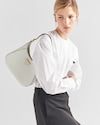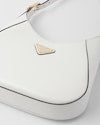 A bold and refined silhouette characterizes this leather shoulder bag with fine details. The geometric construction contrasts with soft lines to create a modern and elegant yet sporty bag, an expression of the hybrid concept and part of the Prada's aesthetic code.