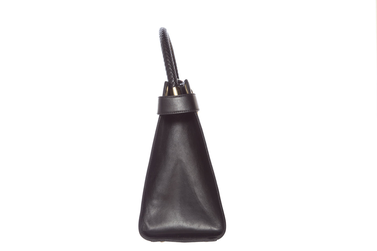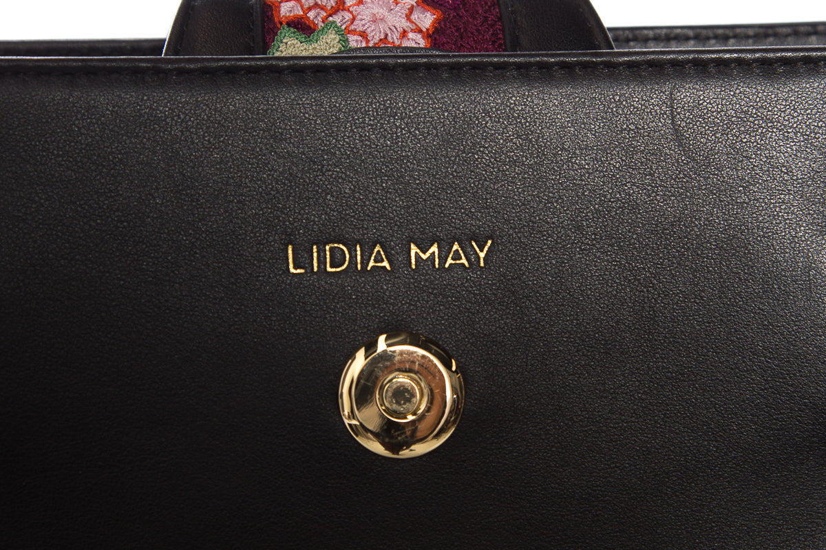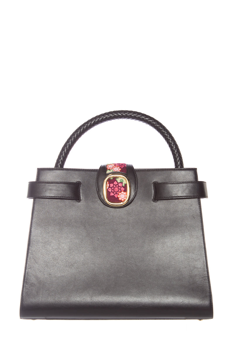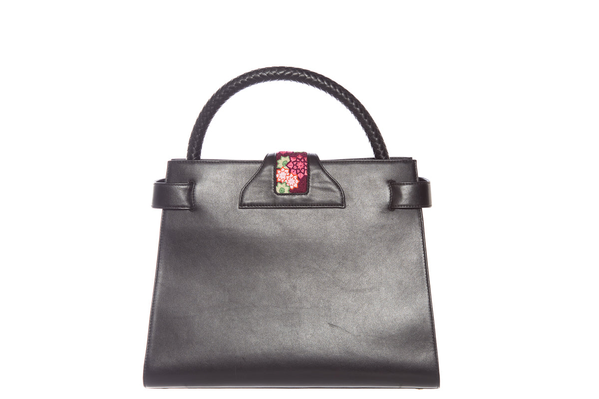 Lidia May Black Pema Shopper Tote with hand-embroidered lotus blooms. Hand-braided handle, luxurious natural leather lining. This item is in Excellent condition.