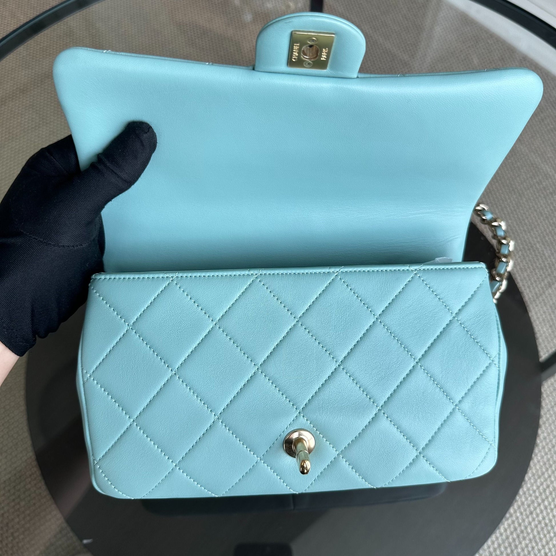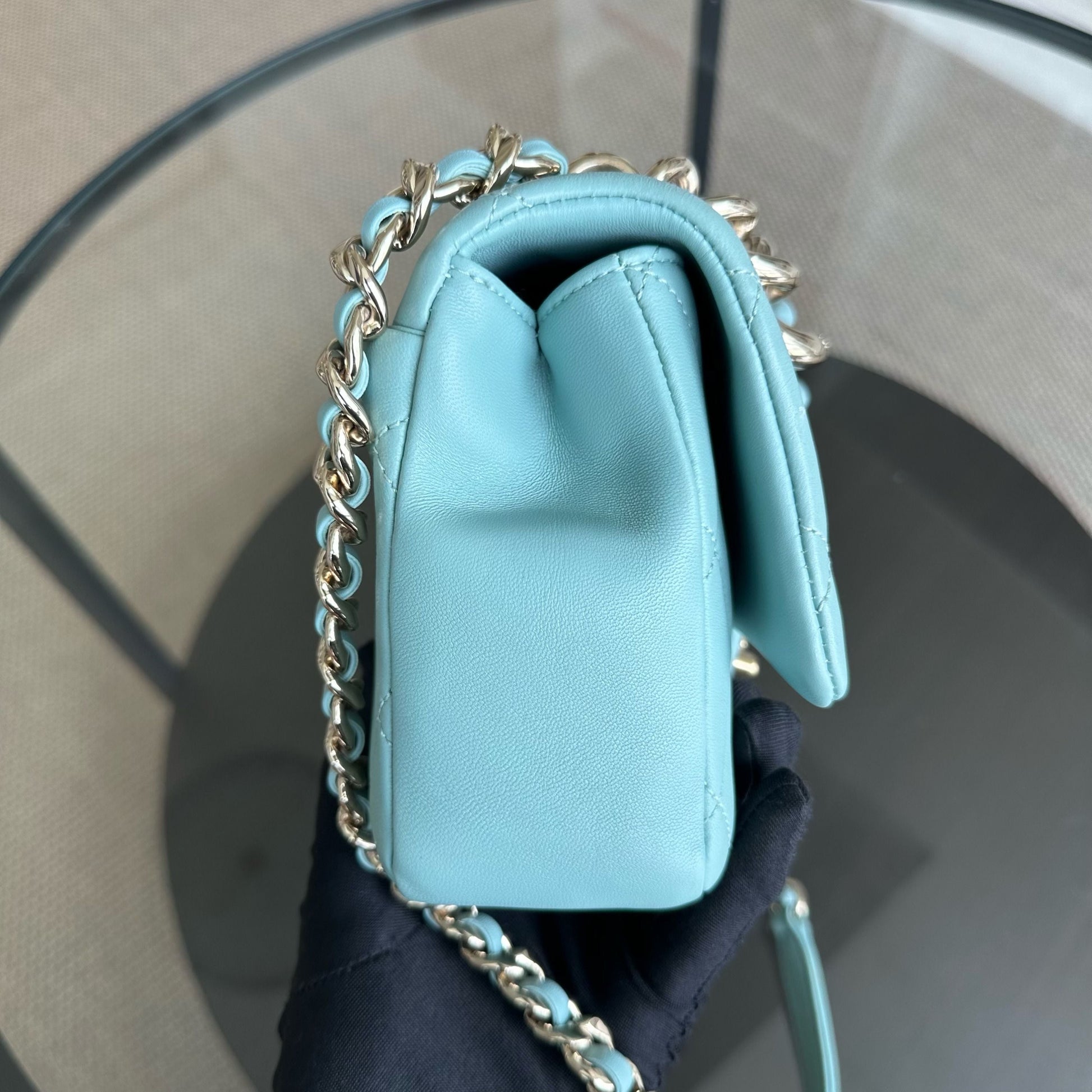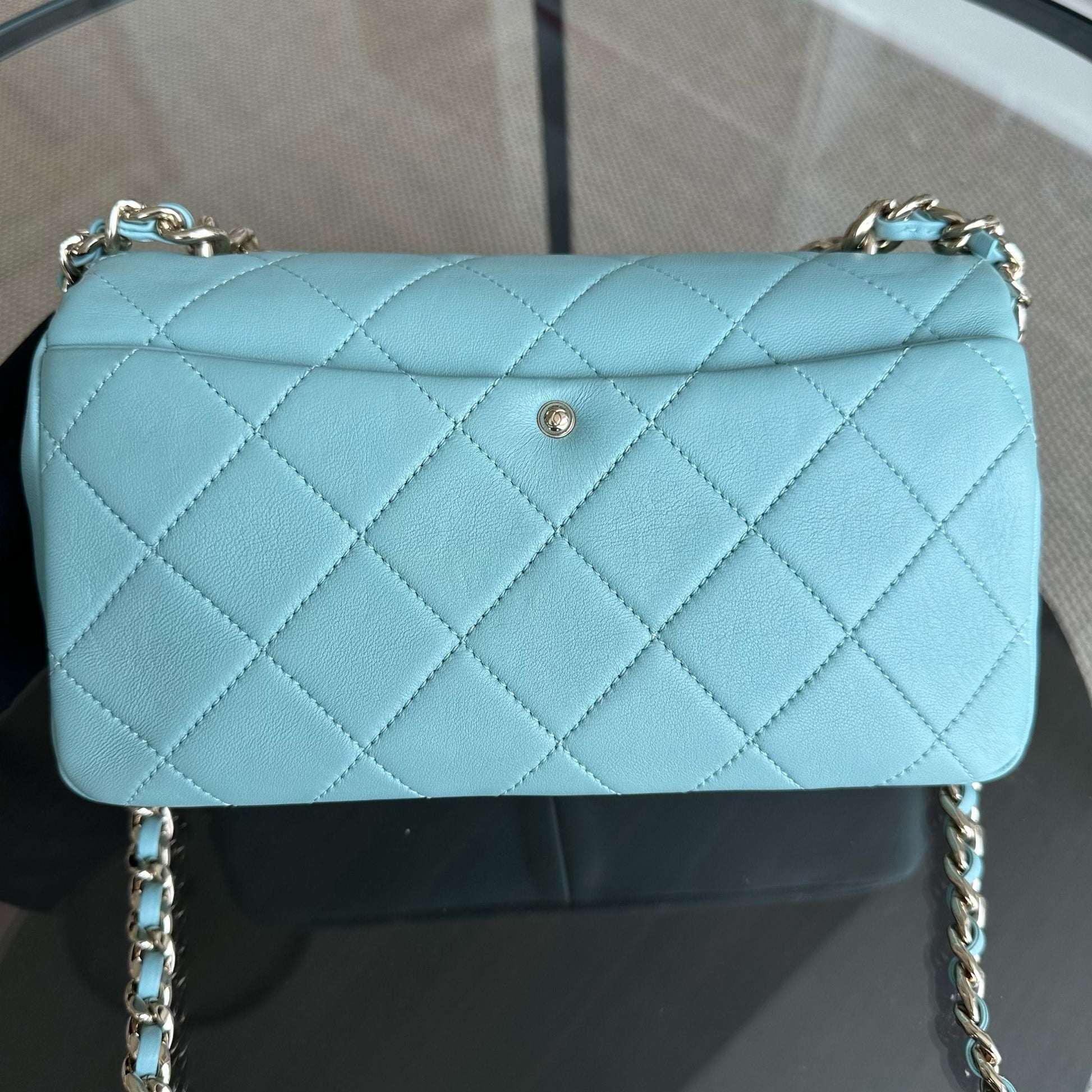 *Like New* 2020 Elegant Resin Chain Quilted Lambskin Light Blue GHW No 29