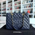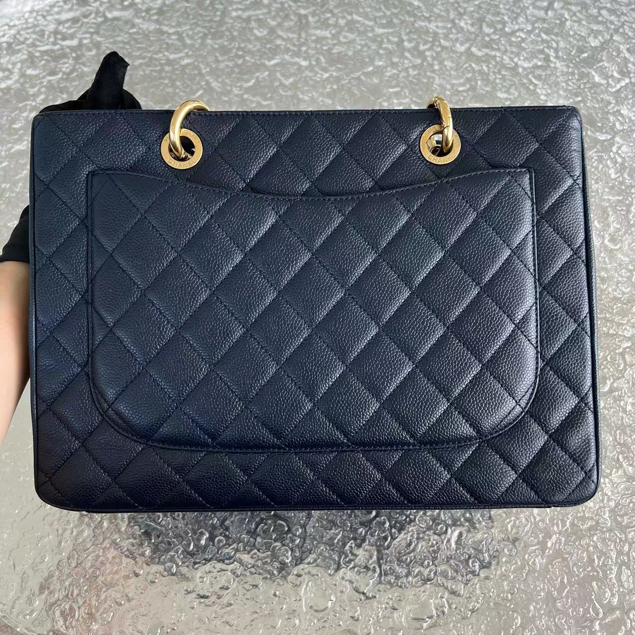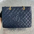 *Like New* Caviar GST Grand Shopping Tote Quilted Calfskin Dark Navy Blue Golden Hardware Series 19
