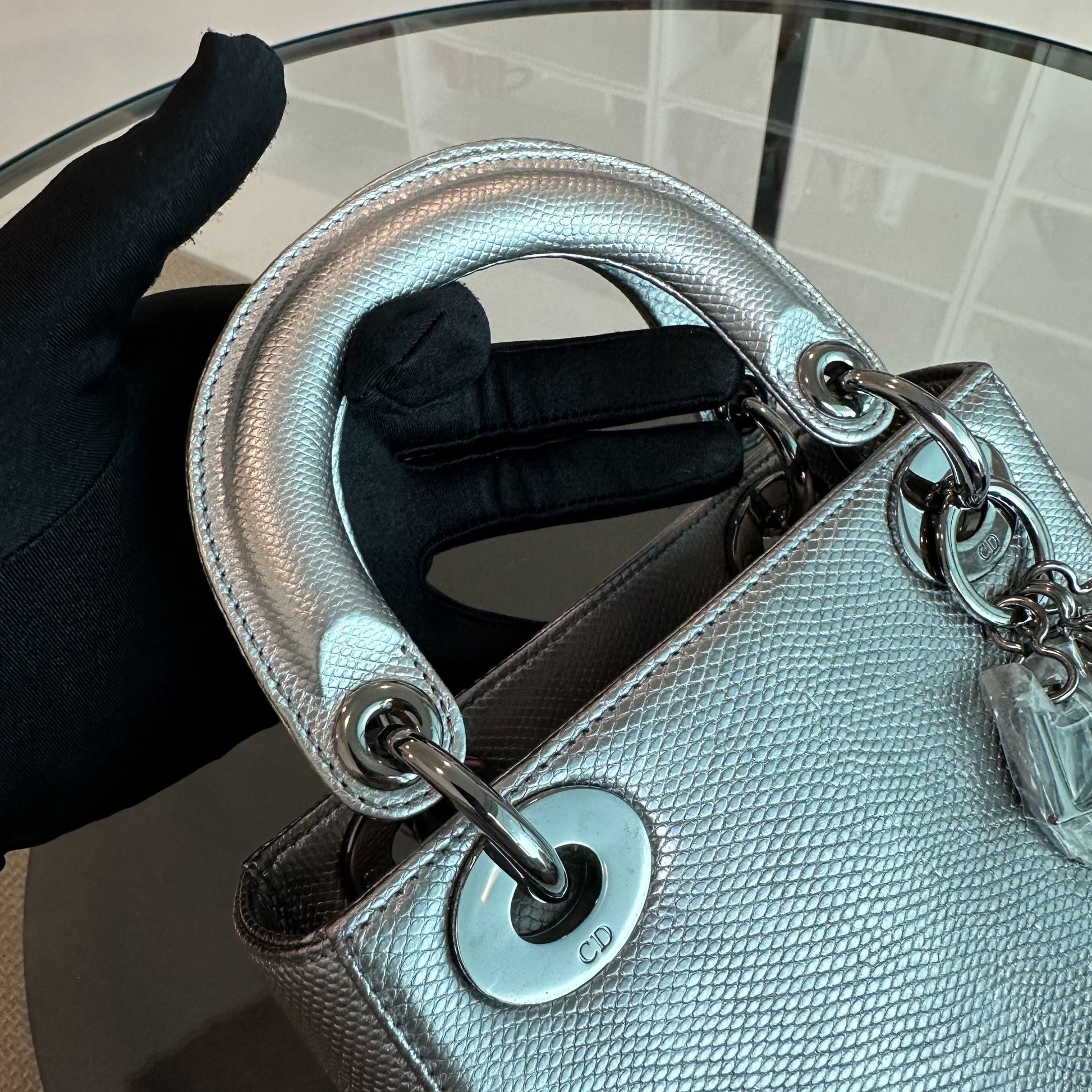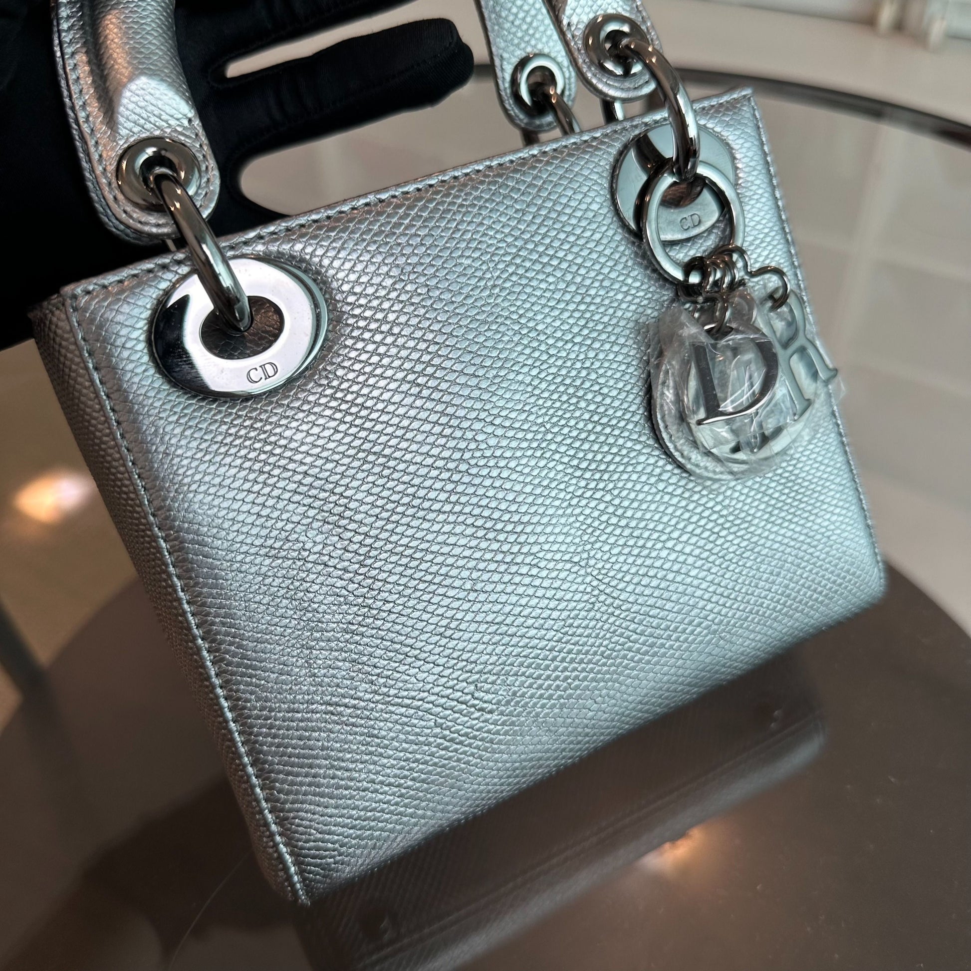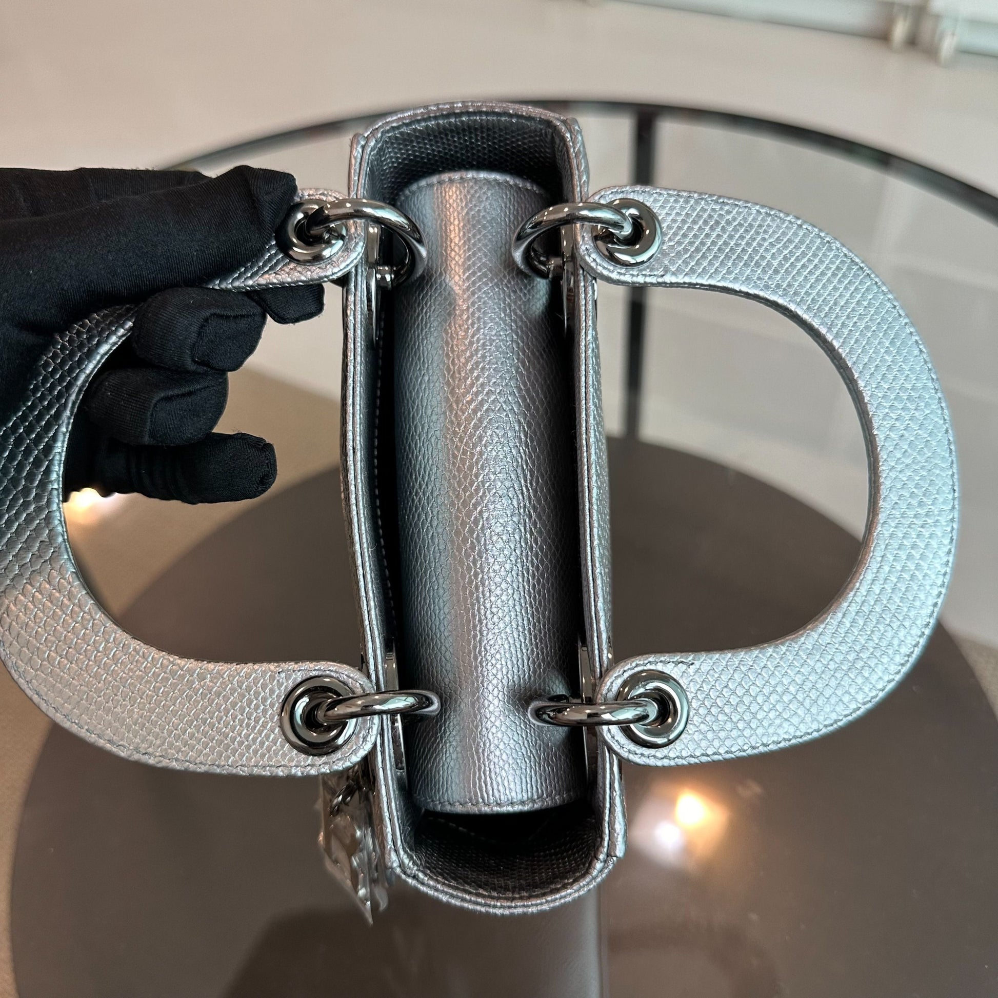 *Like New, Lizard* Lady Mini Lizard Silver Metallic Adjustable Strap SHW