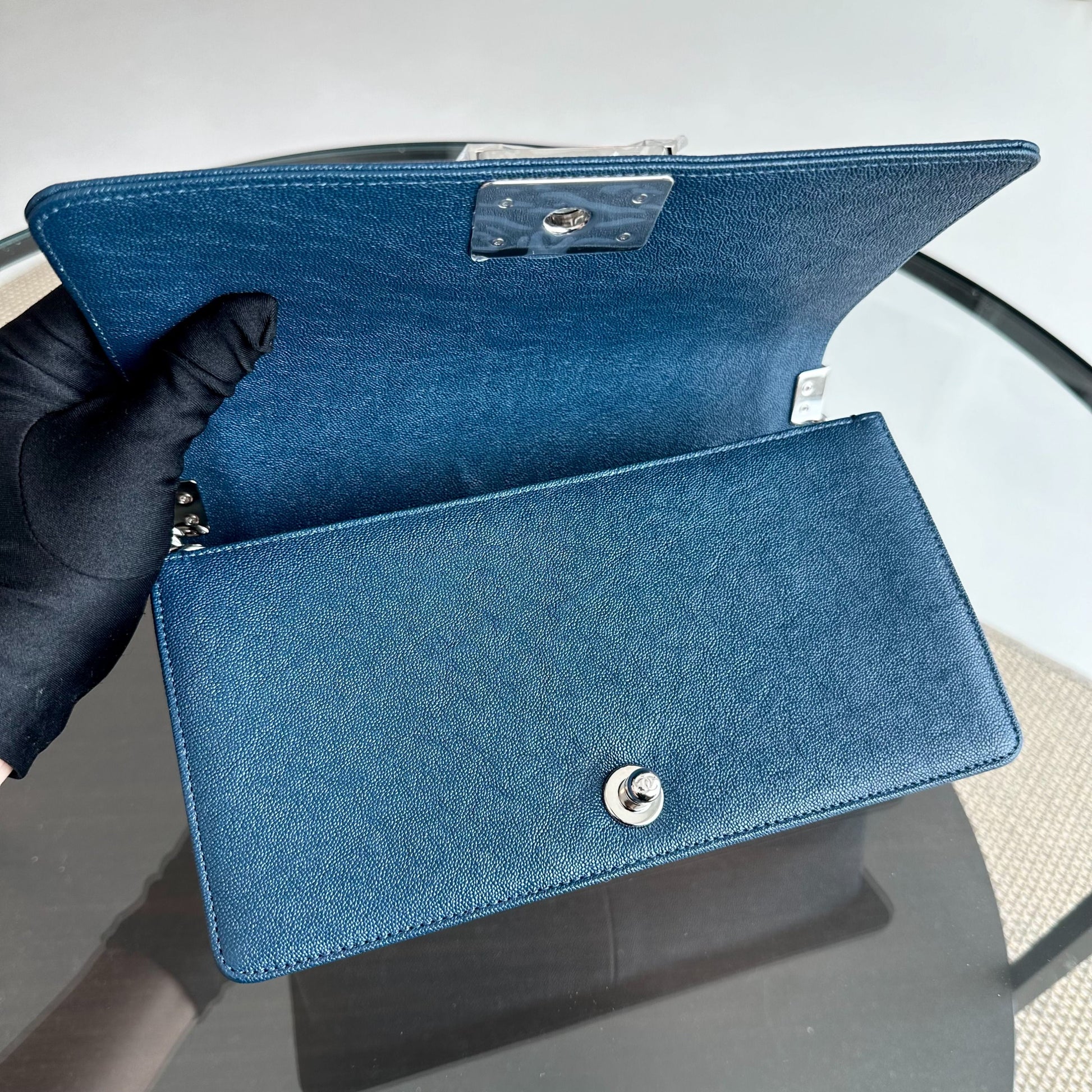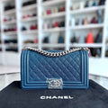 *Like New, Series 28* Caviar Boy Old Medium 25CM Quilted Calfskin Dark Blue No 28