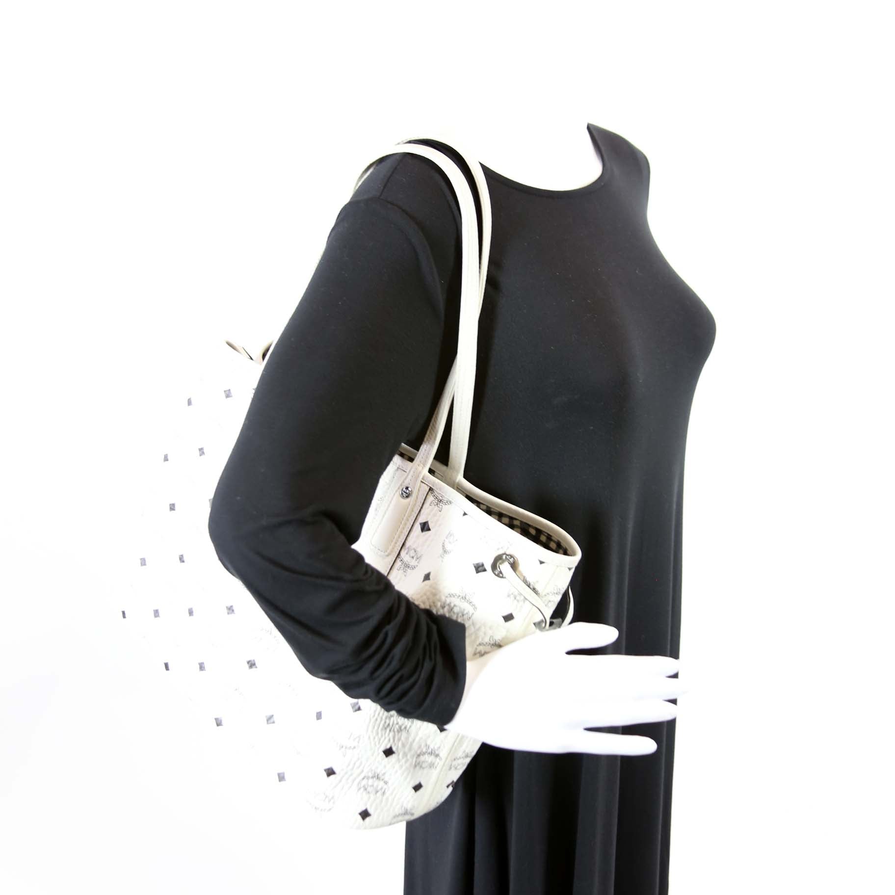 This MCM Liz Tote Reversible Medium W/Pouchis eye catching bag. The exterior is in the classic MCM Visetos leather.
