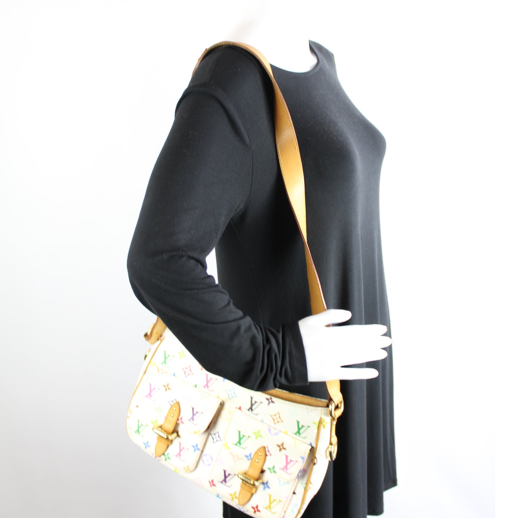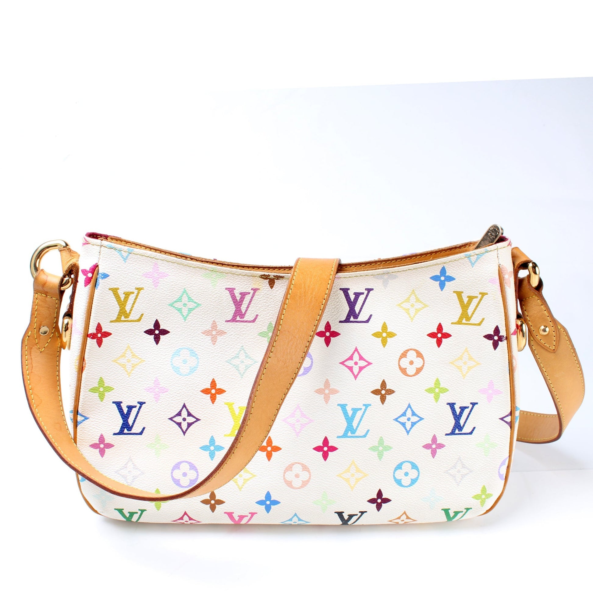 This Louis Vuitton Lodge GMis eye catching bag. The exterior is in the classic Louis Vuitton Multicolor Monogram coated canvas.