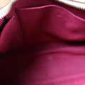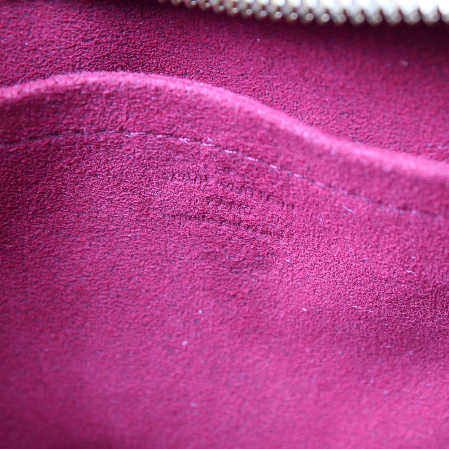 Interior: The interior shows discoloration throughout. The interior features one open pocket.