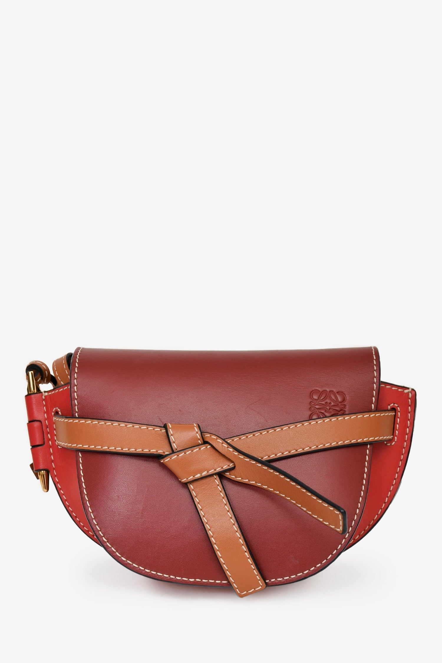 Loewe Burgundy/Brown Leather Mini 'Gate' Crossbody Bag