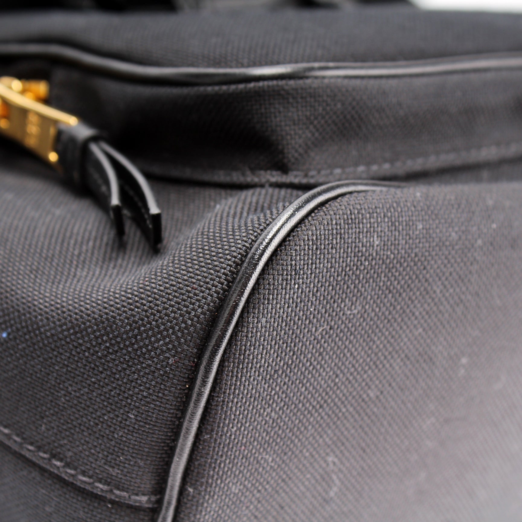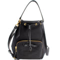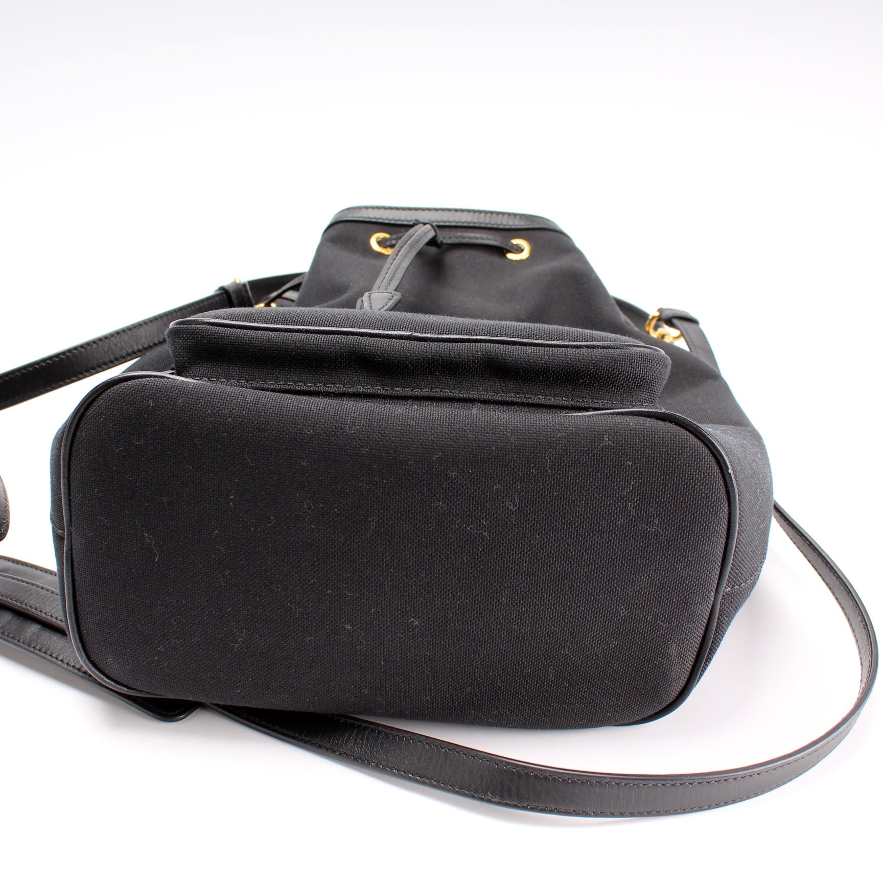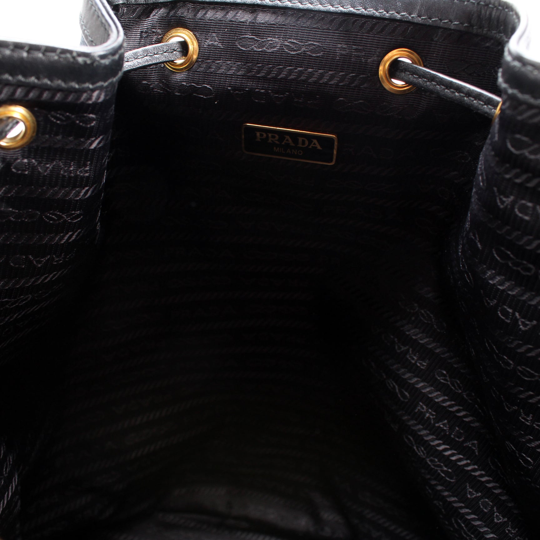 Hardware: The drawstring closure operates properly. The leather shows light wear.