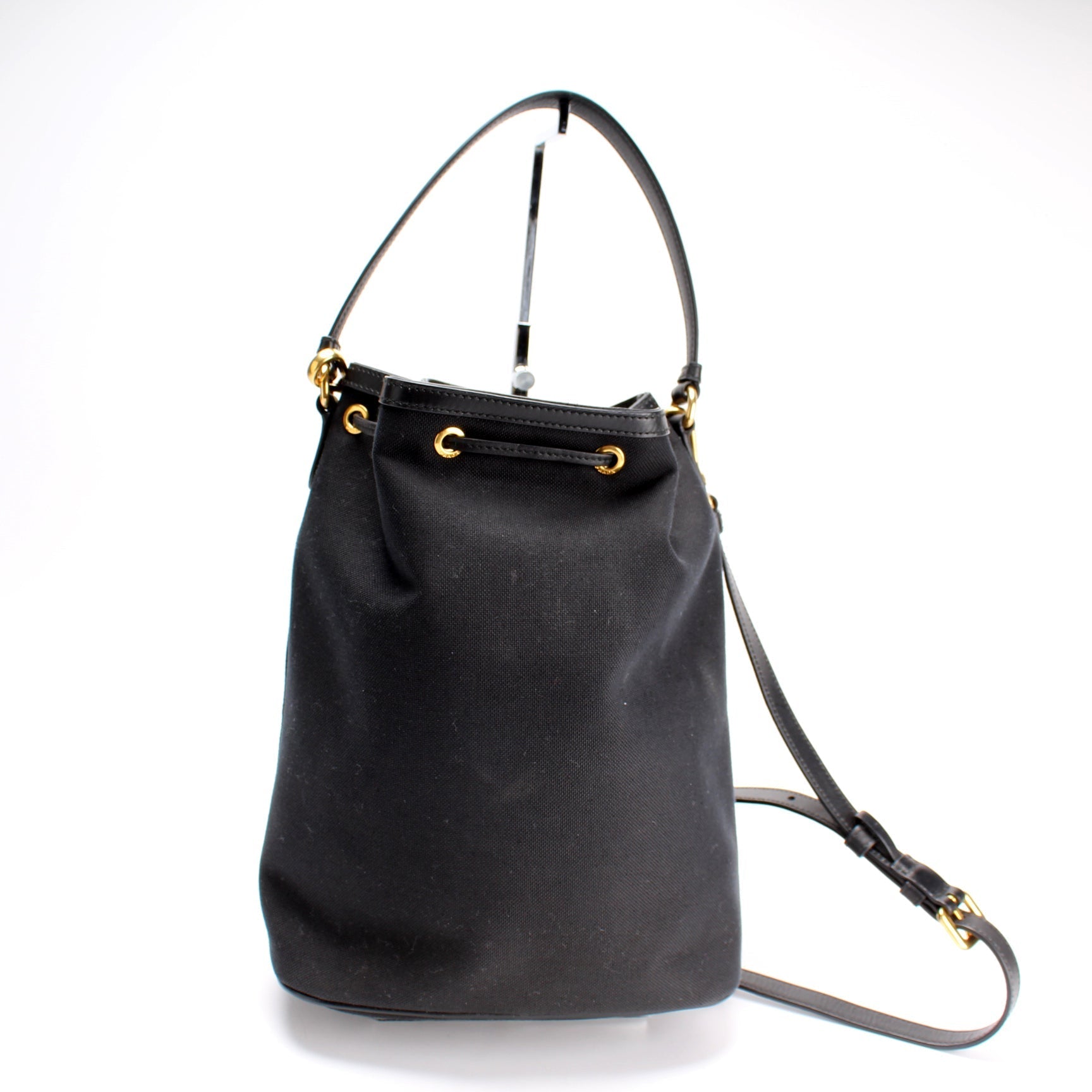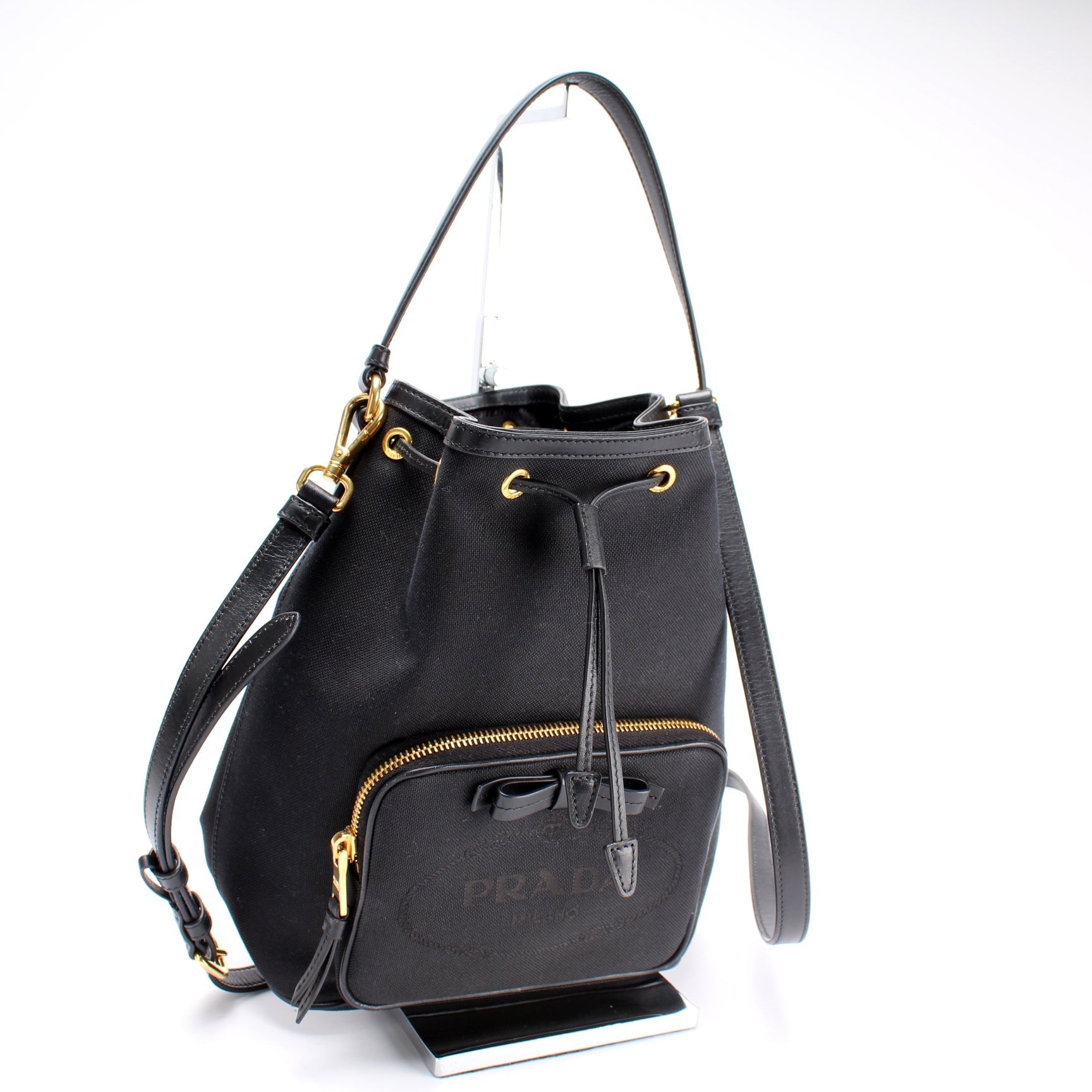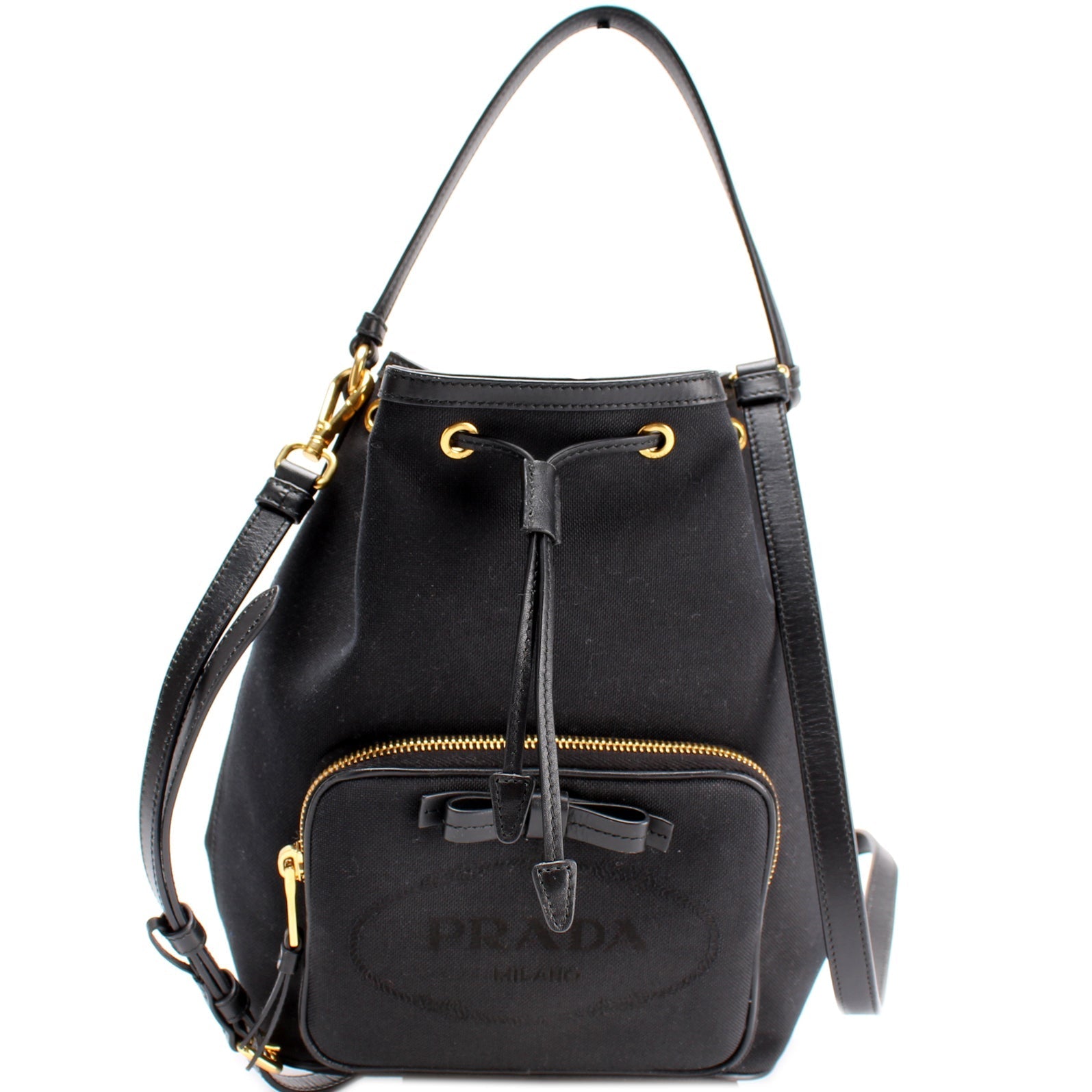 This Prada Logo Jacquard Bucket Bagis eye catching bag.