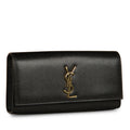 The delicate Kate clutch featuring Saint Laurent's signature gold YSL logo and tassel detail is the perfect accessory for every night out. Carefully crafted in smooth beige leather, the Kate Tassel clutch is a timeless piece that will never go out of style. Exuding elegance and class, this bag was made for a sophisticated and chic woman with a love for luxury. It's the ideal option to compliment any evening attire, whether it be a silk blouse and a skirt or a cocktail dress and a pair of heels, the Kate Tassel clutch is ultimate go-to.