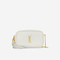 The Lou Camera in mini is a classic cross body and shoulder bag. Crafted in white grained leather and accented with a feature tassel, the Lou Camera Bag is perfect for daytime casual use when you're on the go, or the perfect accessory to match your evening dresses.