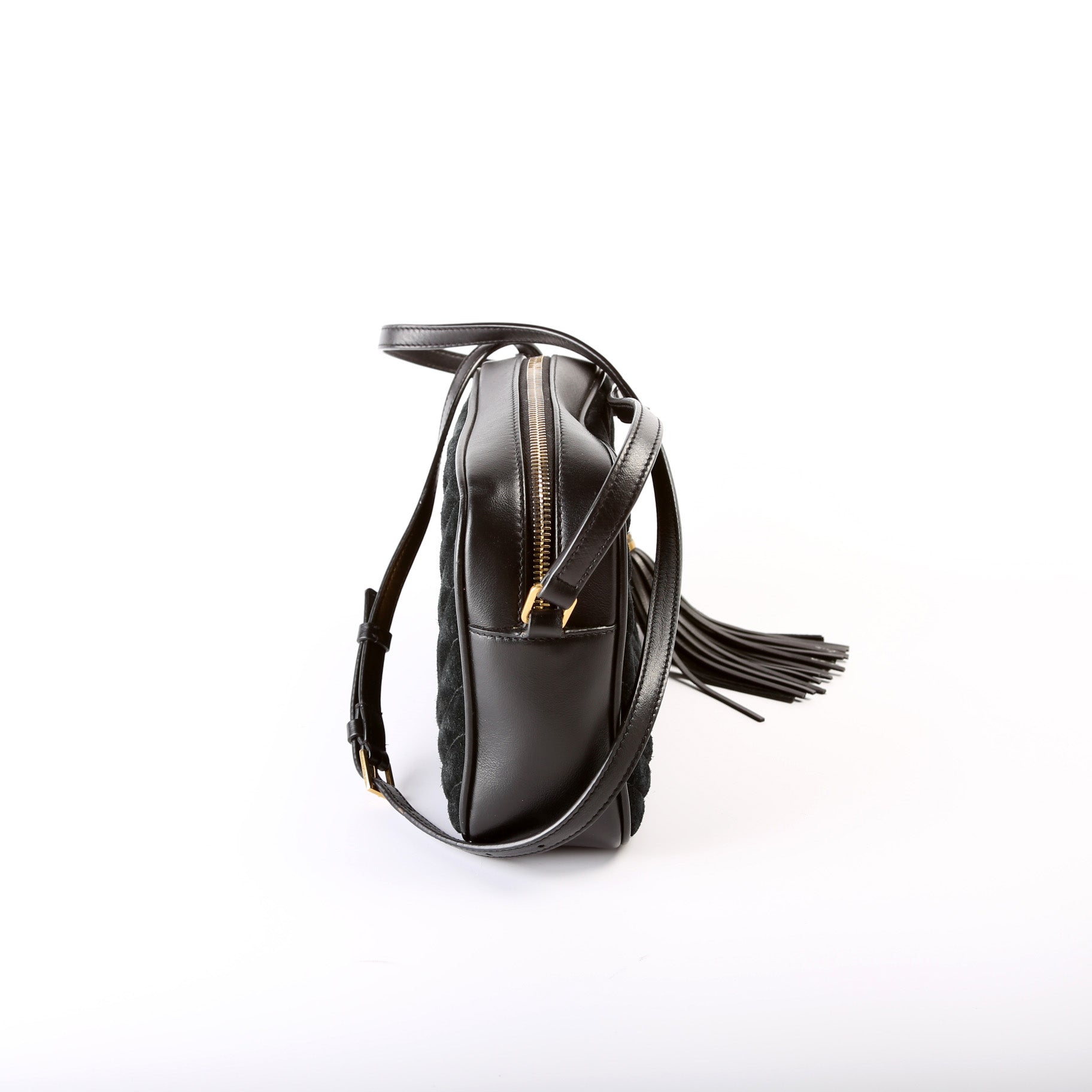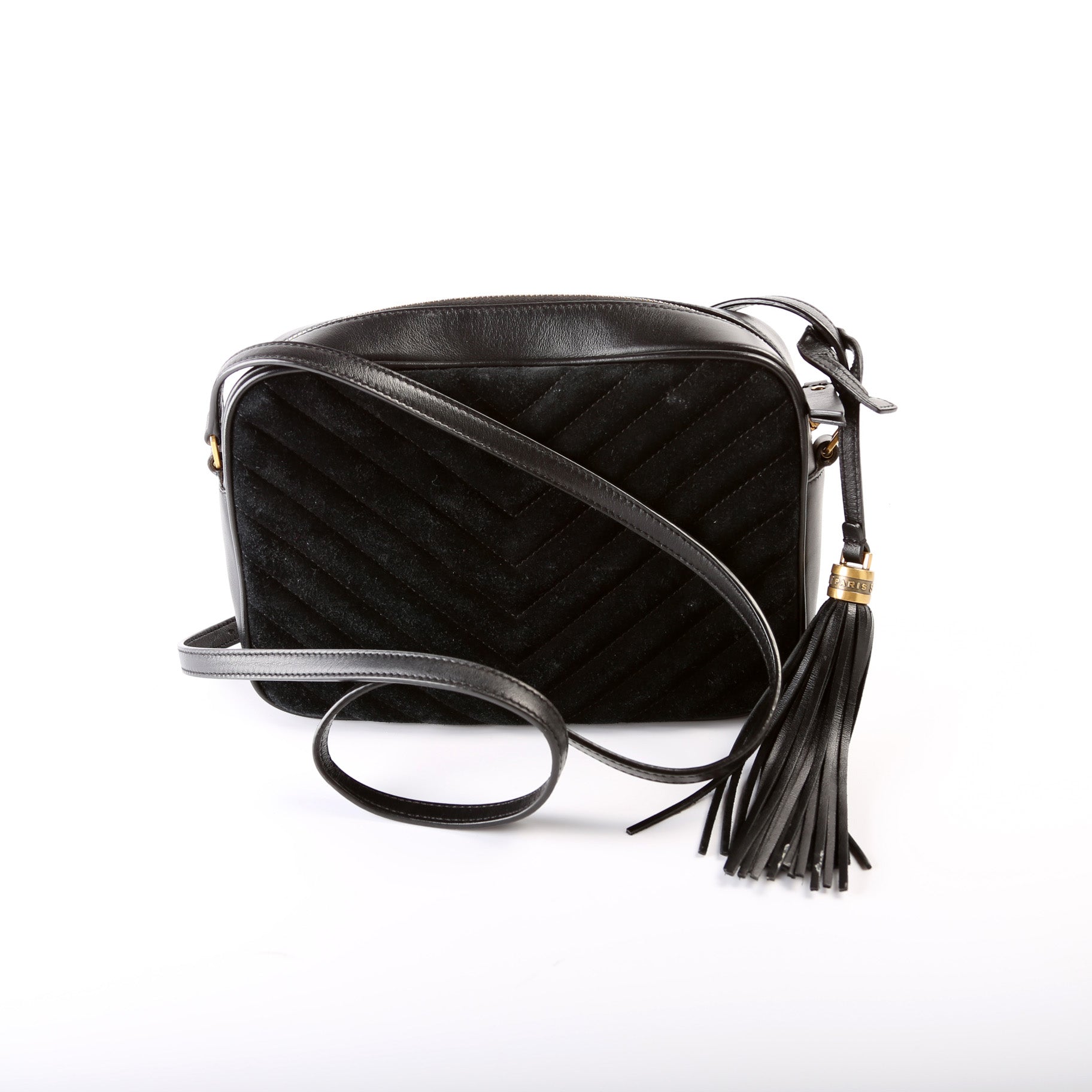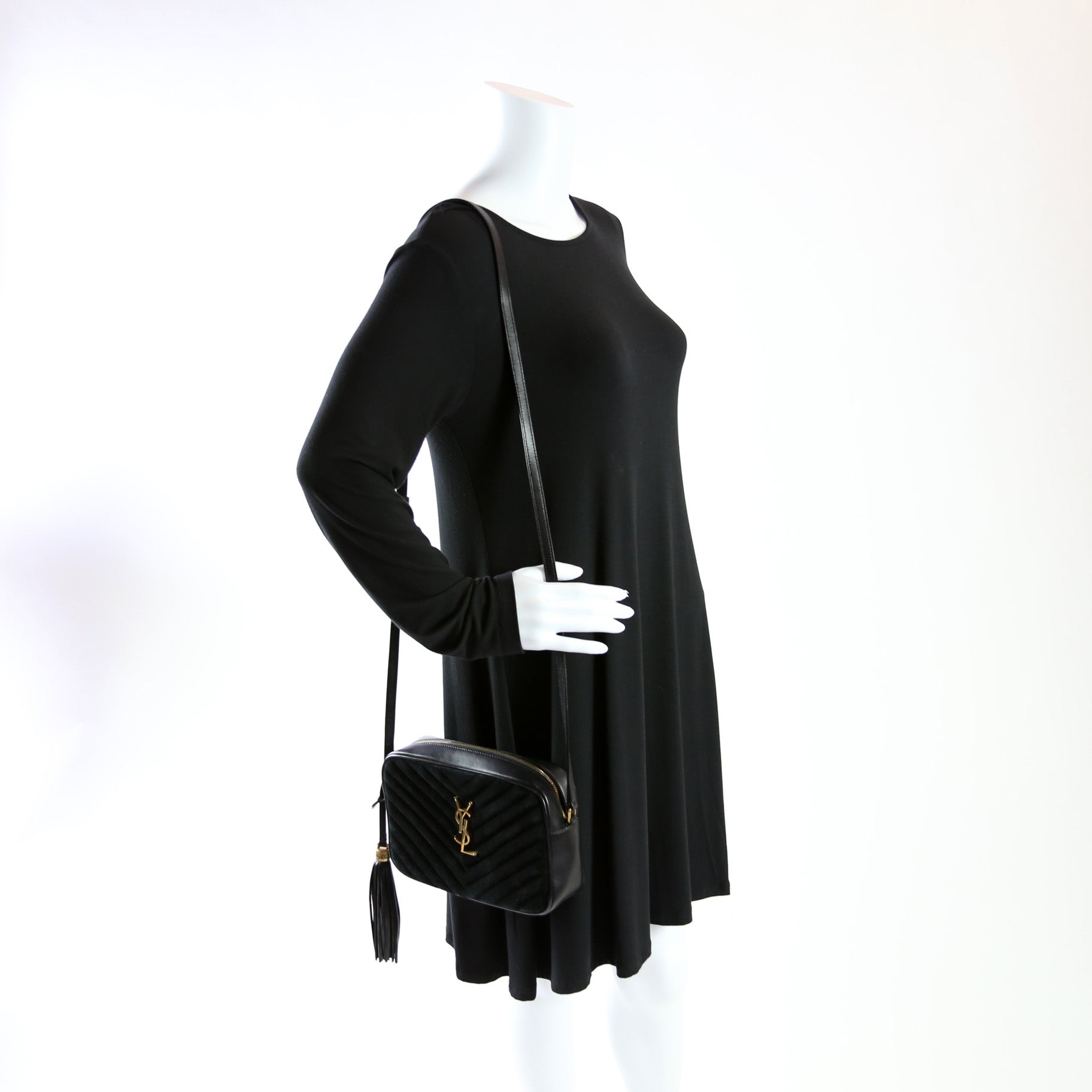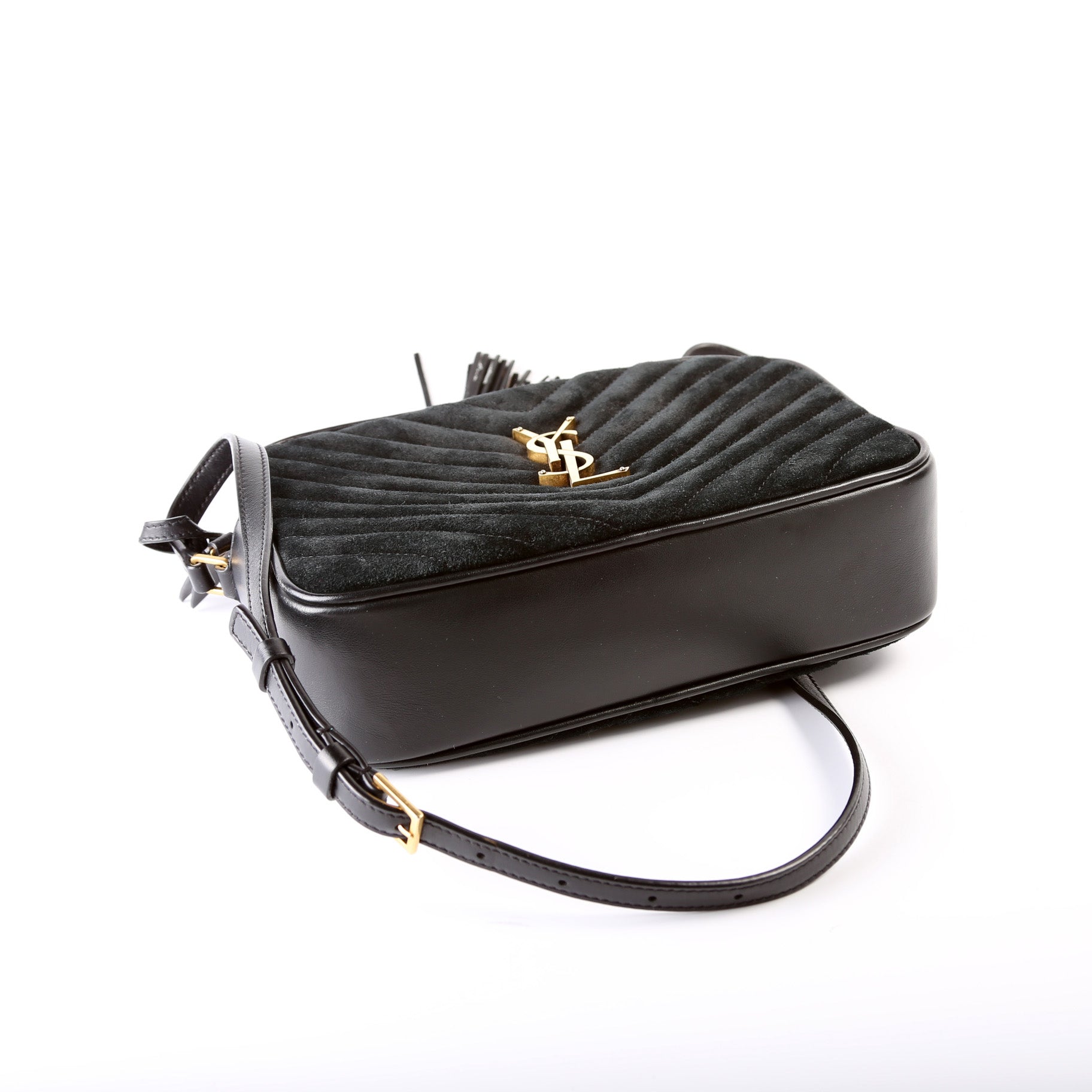 This Saint Laurent Lou Camera Bagis eye catching bag. The exterior is in the classic Saint Laurent suede fabric.