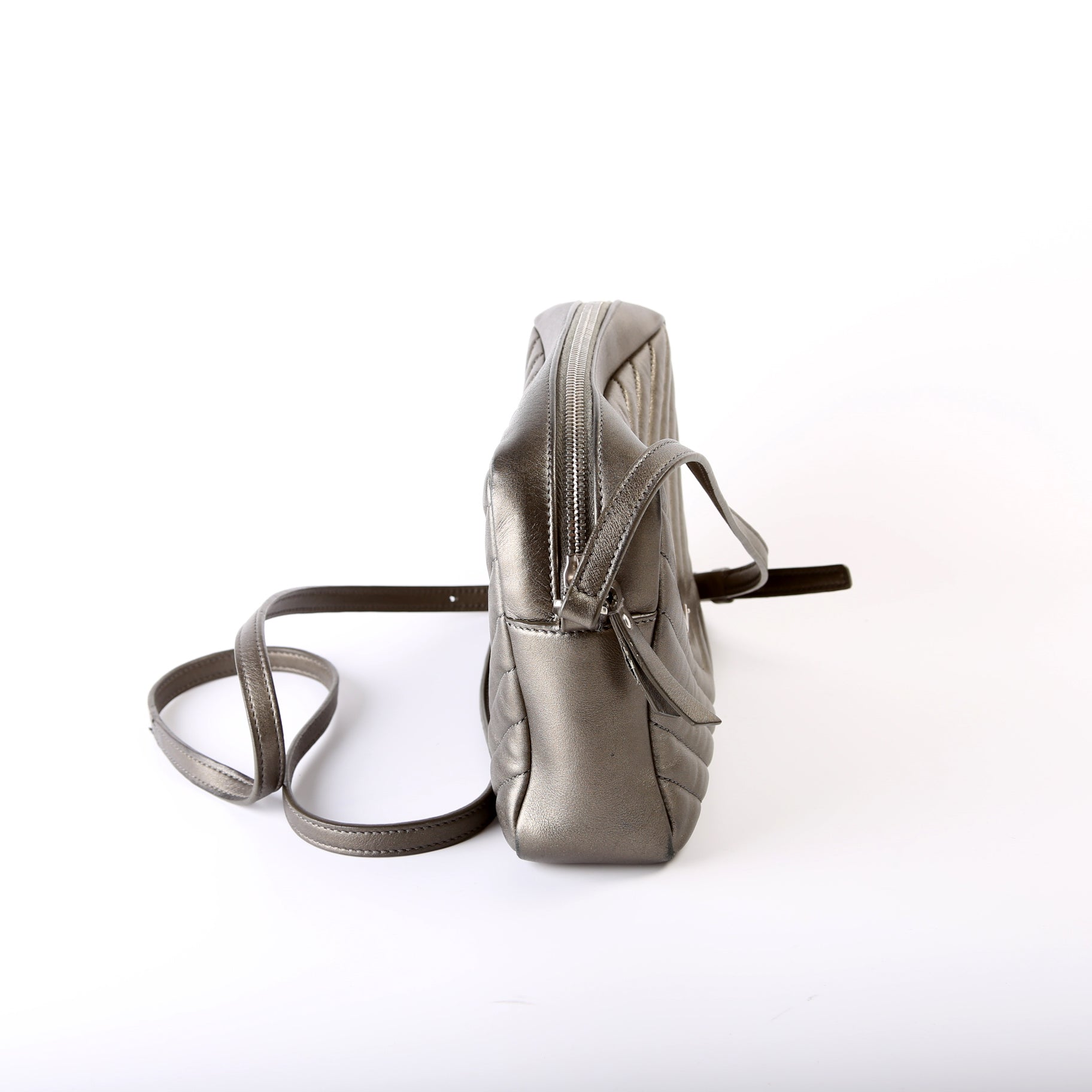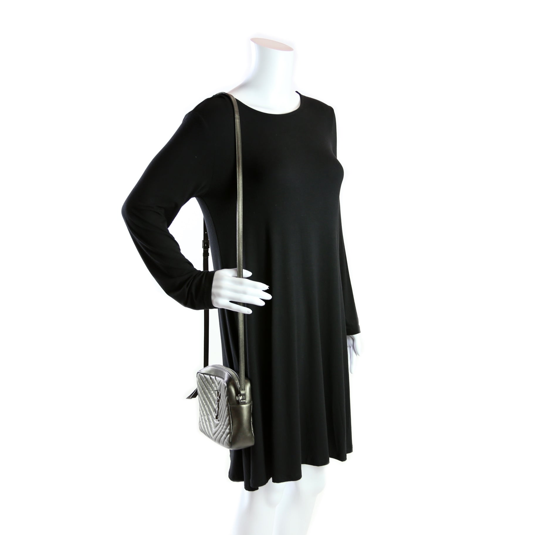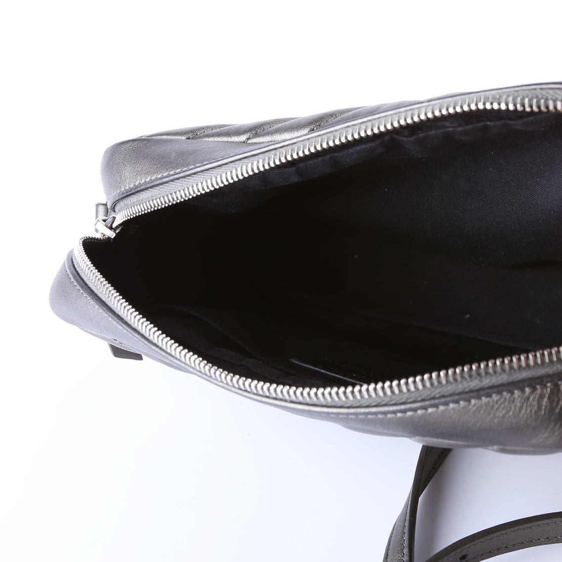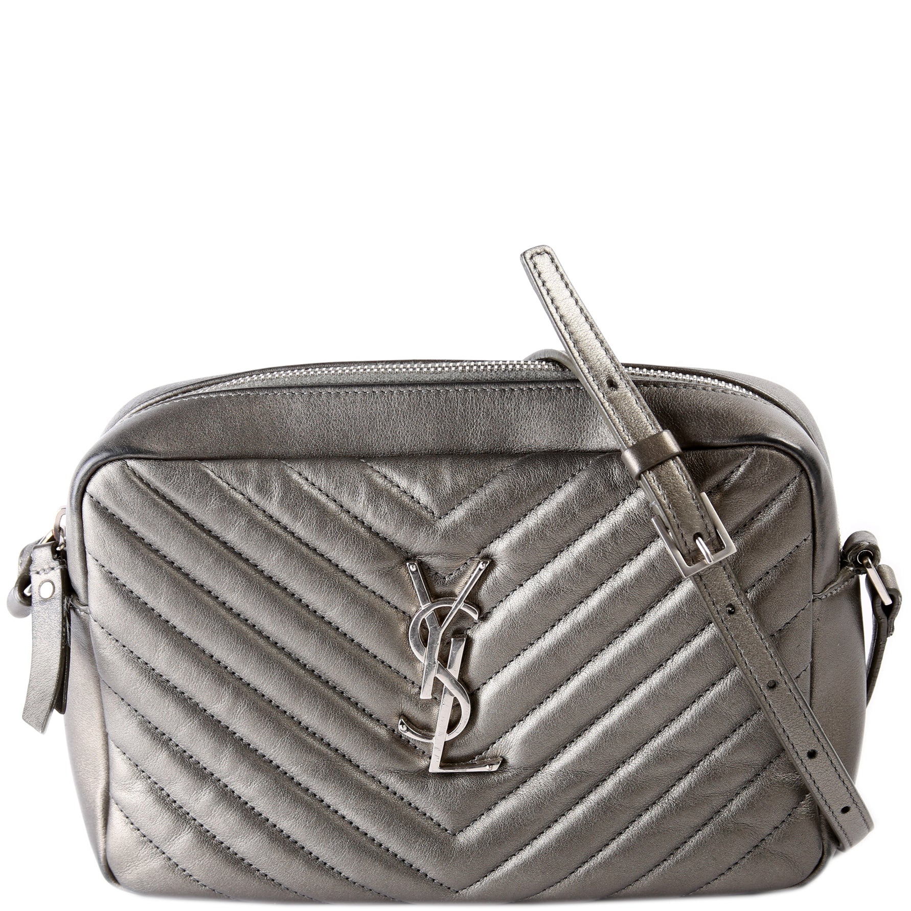 This Saint Laurent Lou Camera Bagis eye catching bag. The exterior is in the classic Saint Laurent Quilted Chevron leather.