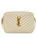 Perfect for any woman with a love for luxury who seems to always be on-the-go, the Saint Laurent Lou Camera Crossbody bag is the one for you. Why catch a break when you look this good with this bag swung across your body? To the least, the Lou is one you'll want to show off to everybody and we can't blame you. She's sleek, stylish, sophisticated and effortlessly cool at the same time - I mean, she really is just that girl. Crafted in smooth, matelassé off white/cream leather and complimented by gold-tone hardware, the Lou is basically that bag you'll never take off. No but really...she's suitable for any and every occasion. Whether running errands, going for dinner with your boyfriend, hitting the town for a night out with your girls or going for a hungover brunch the morning after, the Lou is the ideal companion for any and every occasion. Edgy and chic while also giving us major "off to Whole Foods while looking glamorous" vibes, the Lou is just a bag you need in your life. A well worthy addition to any luxury handbag collection, the Lou Camera Crossbody is a timeless classic from Saint Laurent that you'll never get bored of.