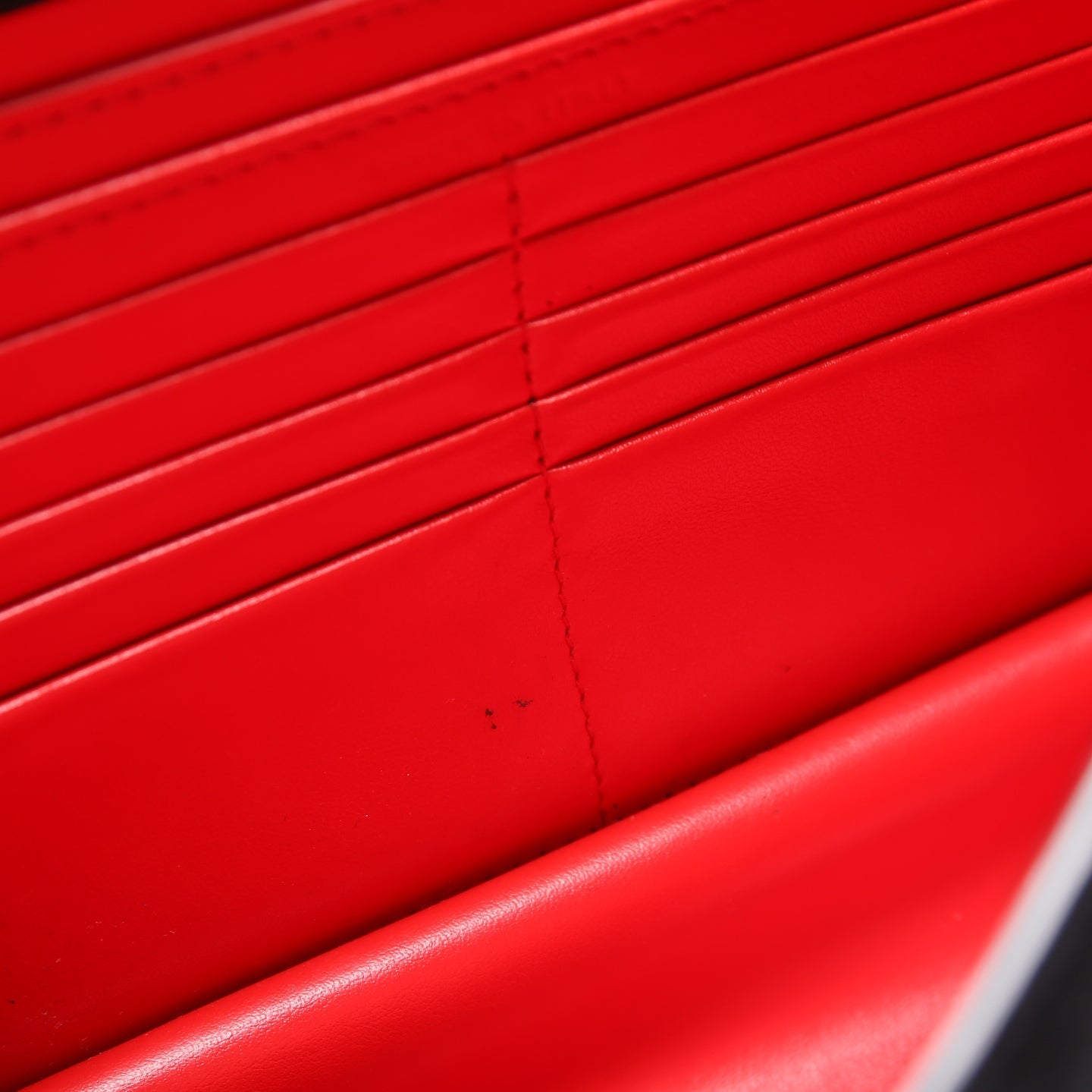 Interior: The interior is clean and free of rips or tears. The interior features ten card slots and one bill slot. The leather has minor wear.