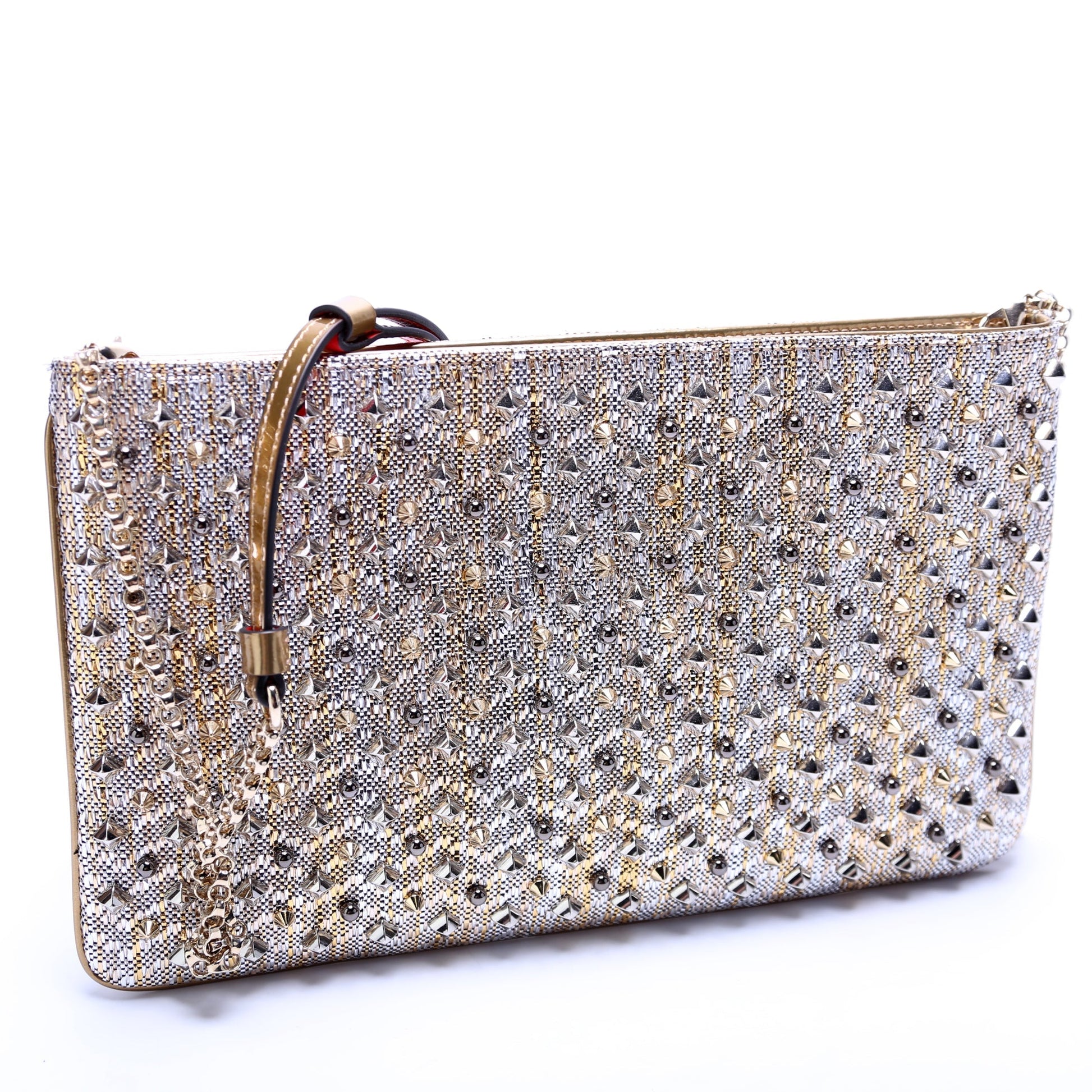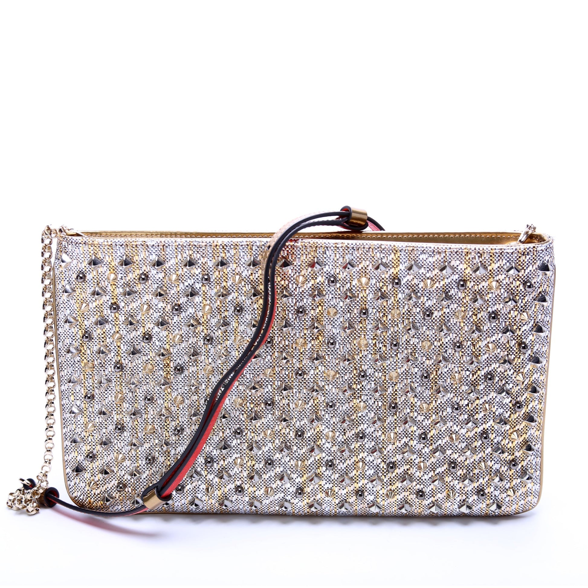 Loubiposh NV Spike Metallic Raffia Clutch