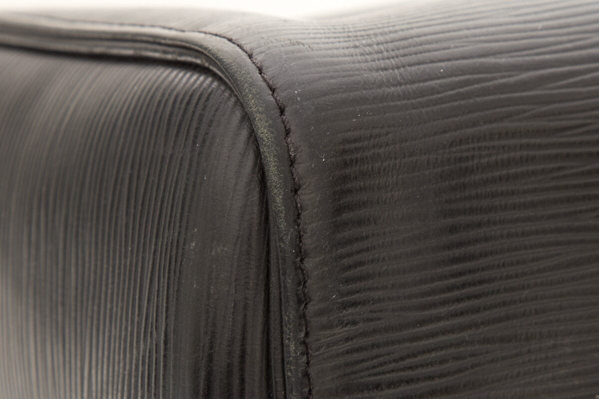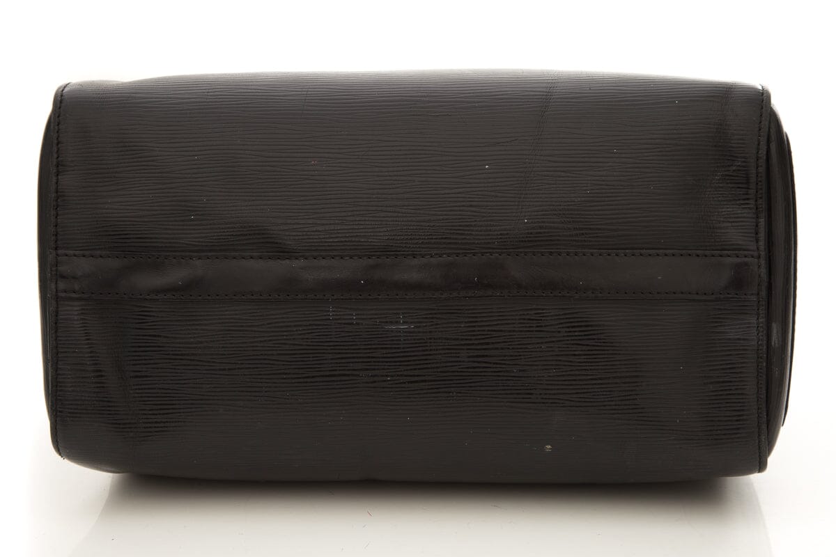 Louis Vuitton 2011 Black Epi Leather Speedy 35 Handbag. This item is gently loved with some scratching/creasing throughout and wear to bottom corner edges.