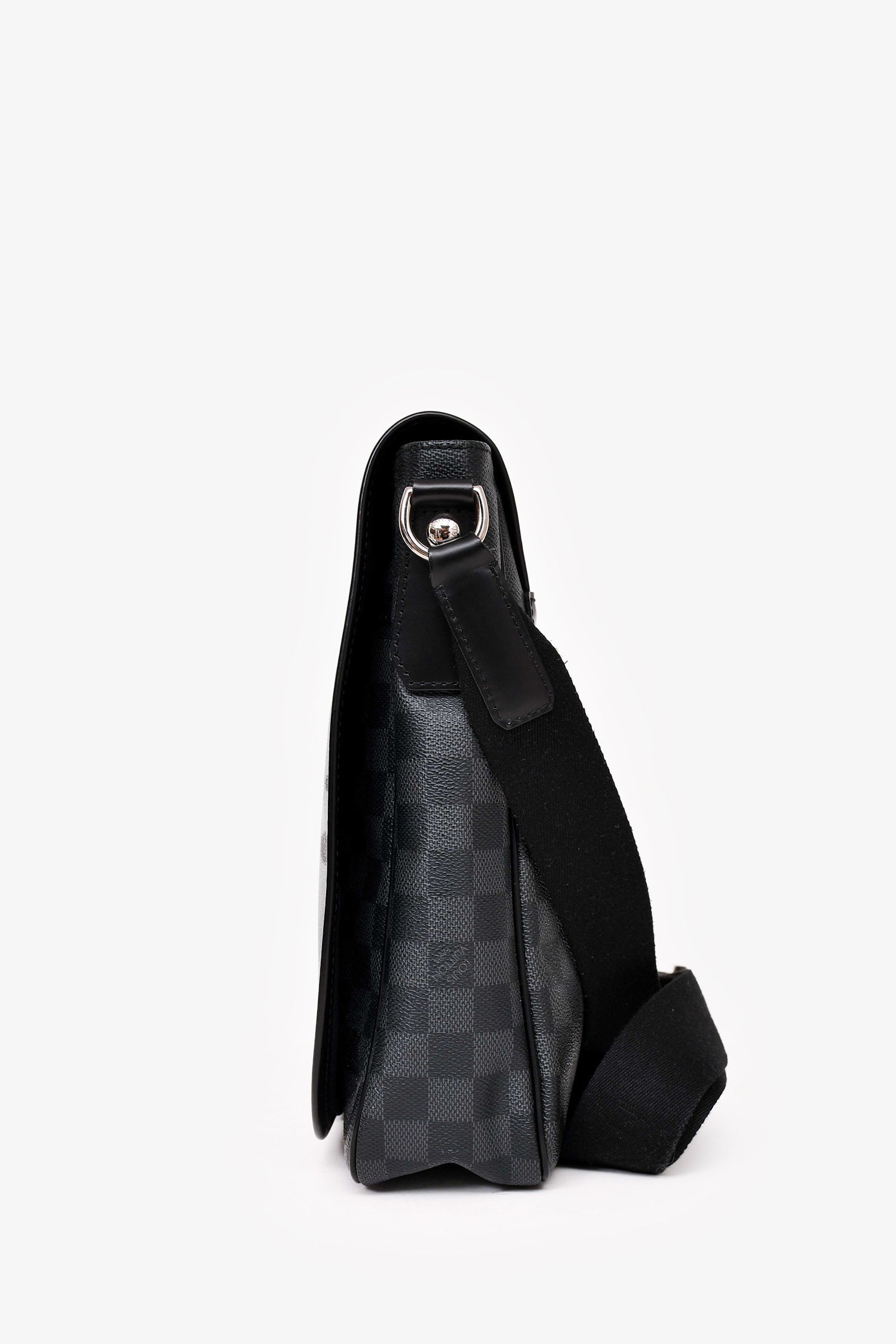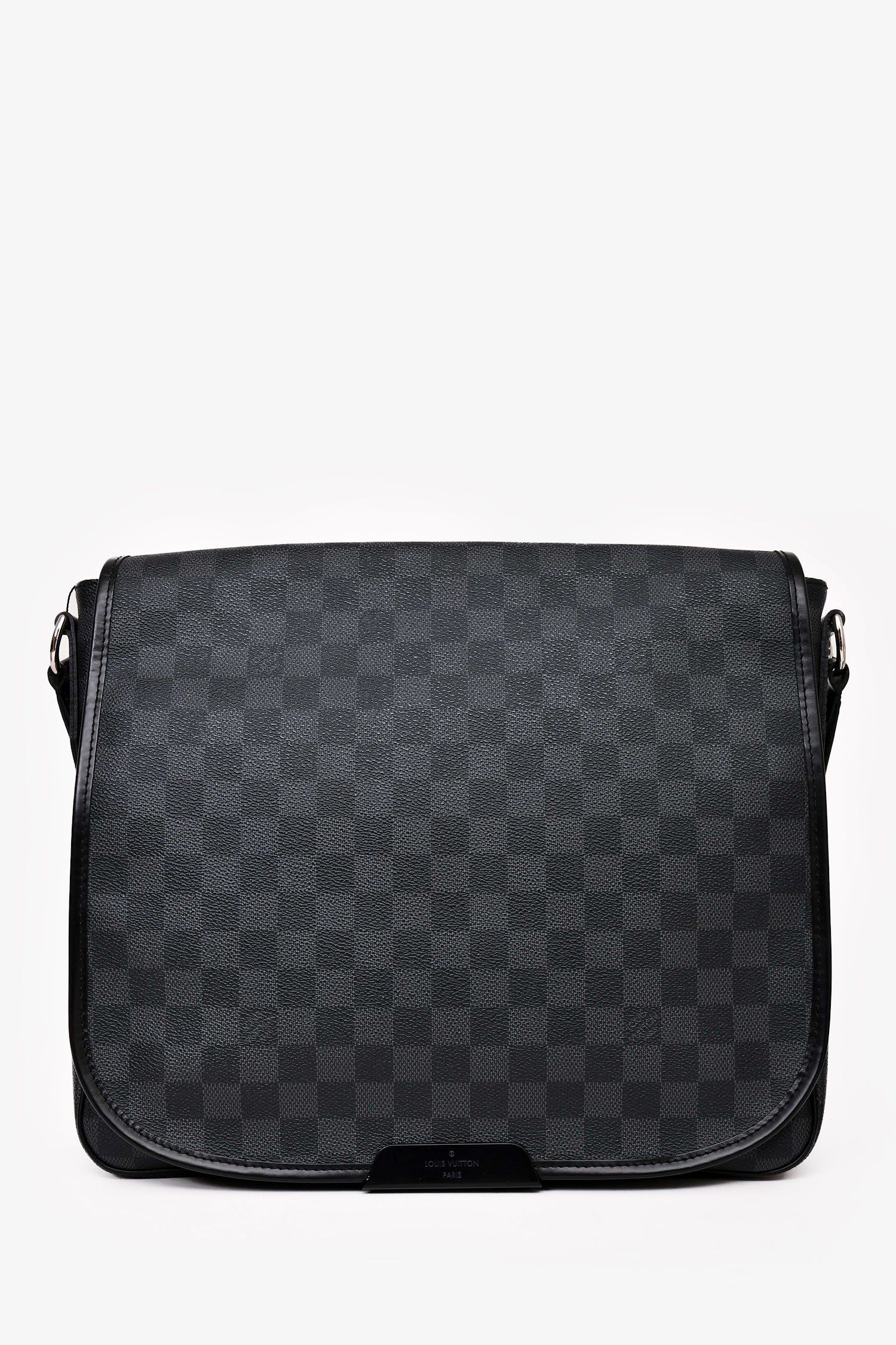 Louis Vuitton 2011 Graphite Damier Messager Bag. Magnetic flap closure. Two interior compartments. Two small interior pockets. One exterior zipper pocket. Silver-tone hardware. Adjustable strap/ Tonal stitching.