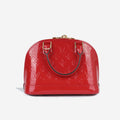 Make a statement with the iconic Alma bag crafted from bright red Monogram Vernis embossed patent leather. Tracing back to the 1930s, with this bag you’ll be carrying a piece of history. The versatility of this bag is endless with its engraved padlock and removable cross-body strap.