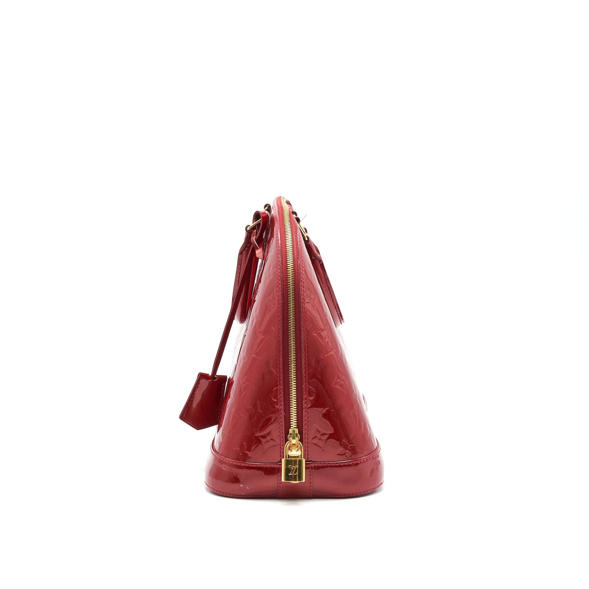 Well Used (This item is in good condition with slight color transfer on bottom part of patent Leather, slight sign of use inside Bag. Slight scratches on hardware and on the edges. )
