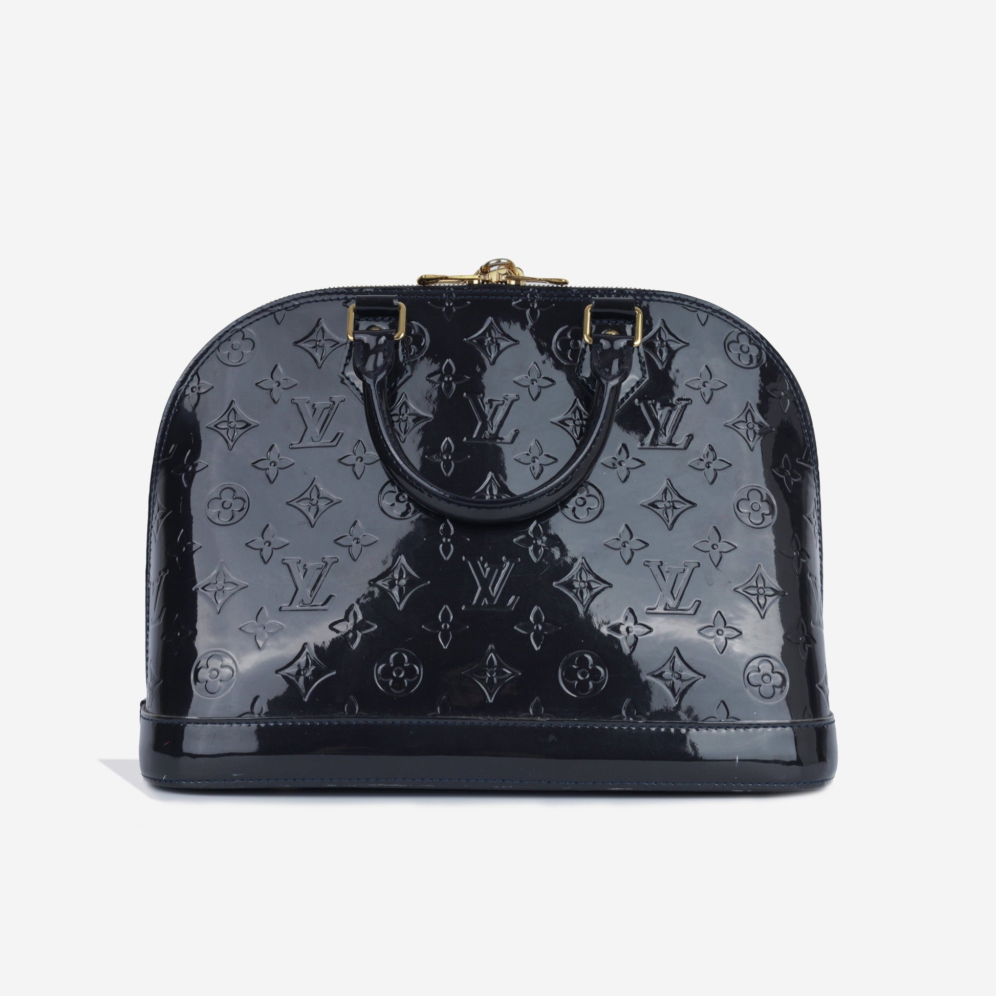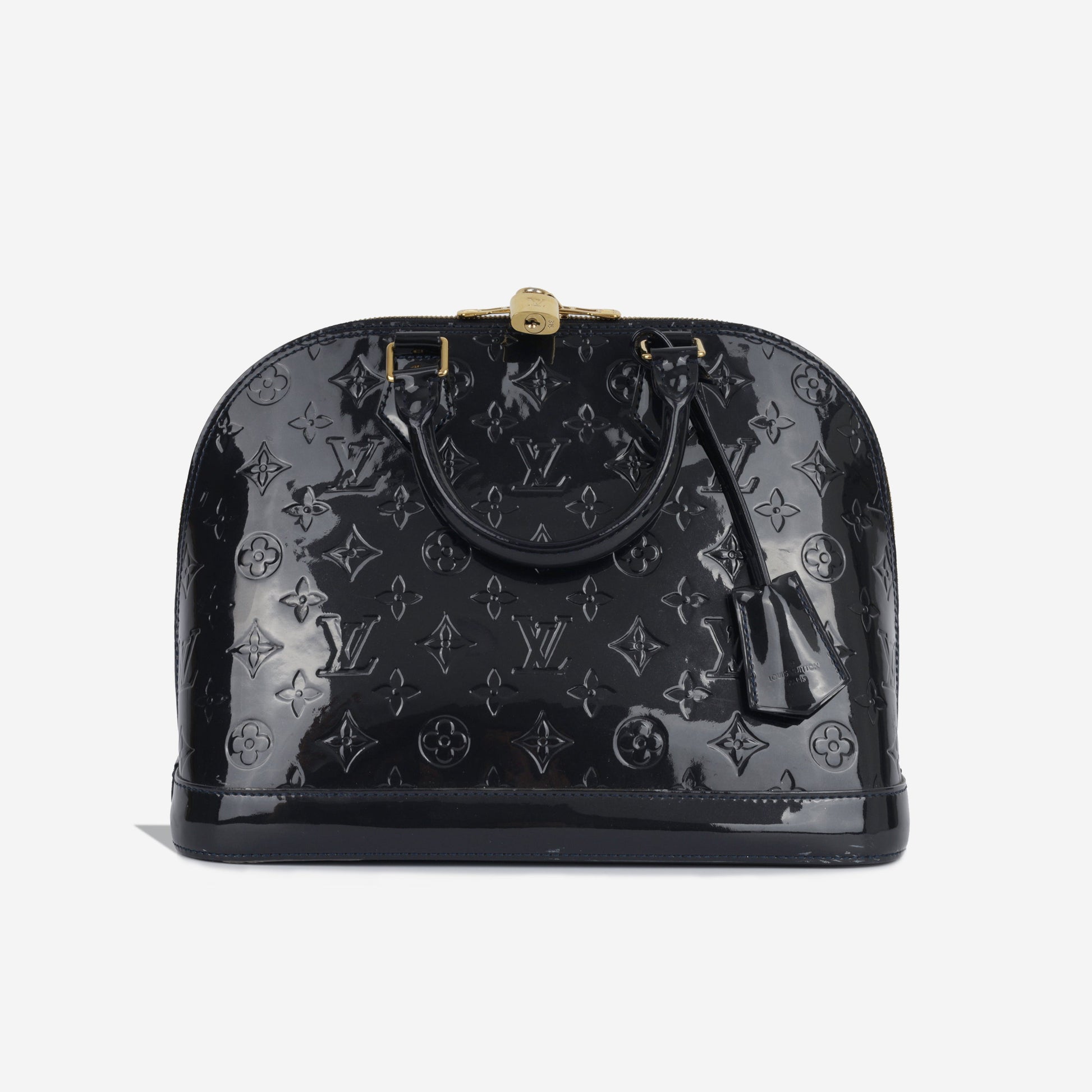 Carefully crafted in shimmering, black monogram Vernis leather, Louis Vuitton presents their iconic Alma bag. A signature piece for the brand, the Alma is one of the most popular LV bags and is constantly in-demand. With their monogram logo print embossed into the leather, this bag is the perfect example of a "subtle statement" piece.