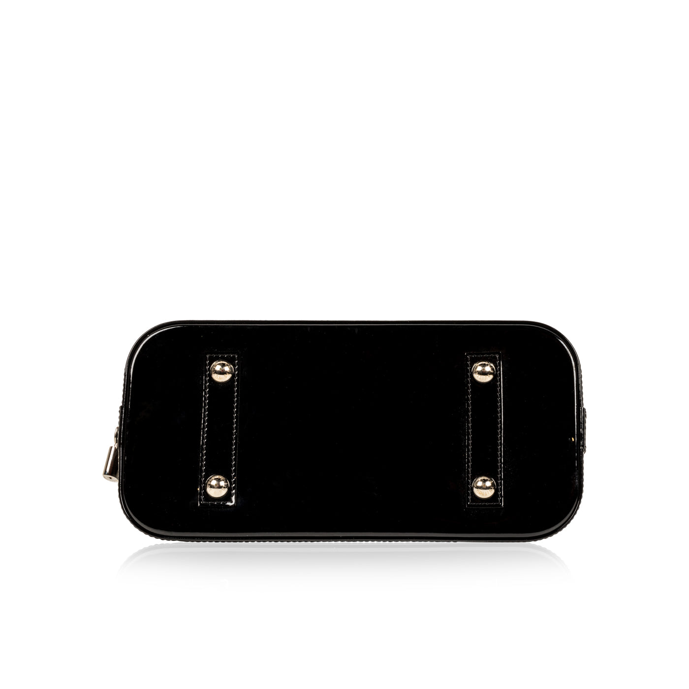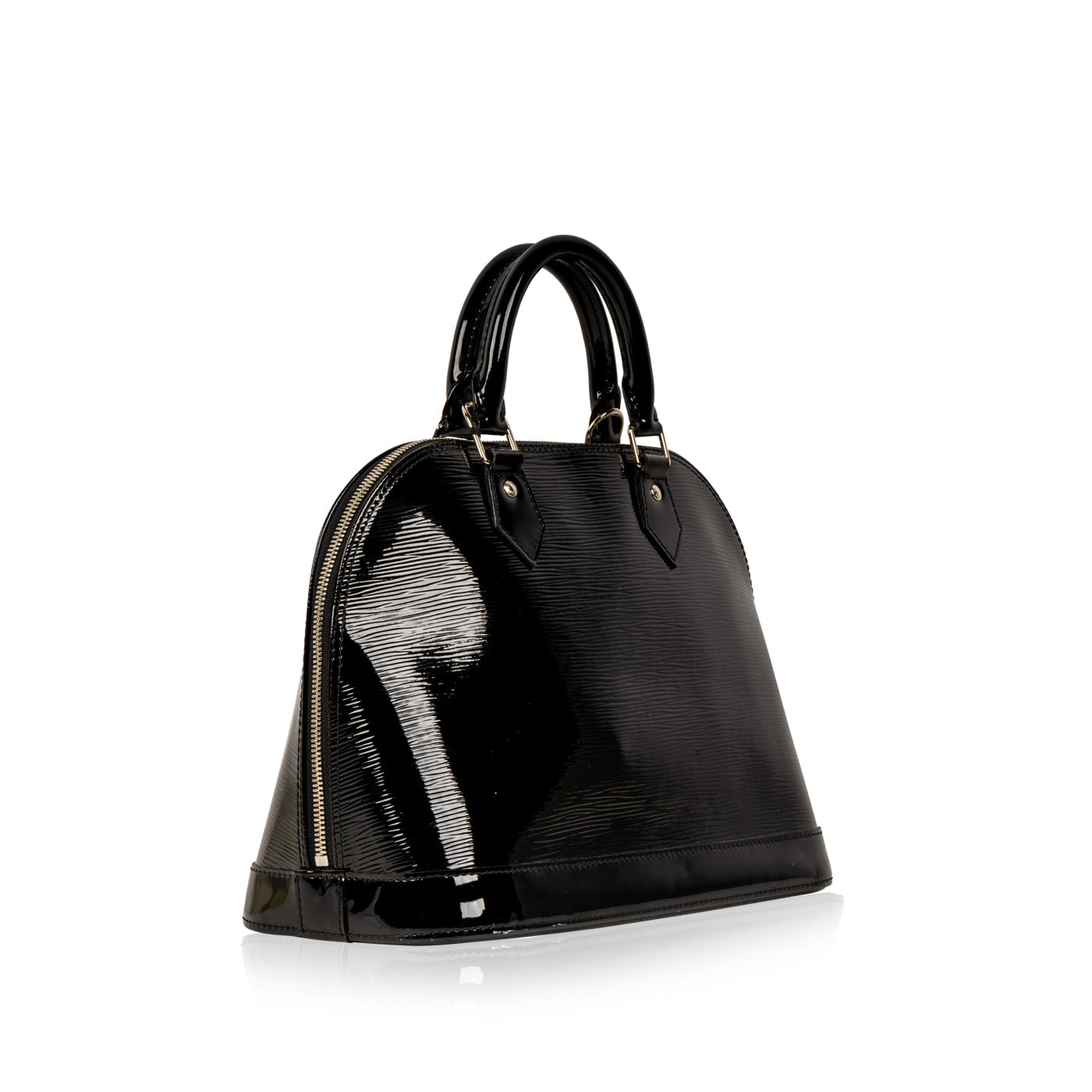 Carefully crafted from patent Epi leather, Louis Vuitton presents their iconic Alma bag. A signature piece for the brand, the Alma is one of the most popular LV bags and is constantly in-demand. With its shiny, jet black hue, this particular model is a prime example of an "understated statement" - depicting only a very small LV logo in the bottom right hand corner, the Alma is modest and low-key but still manages to turn heads wherever she goes. Carry all your every day essentials inside the spacious interior while remaining sleek, stylish and sophisticated. The perfect bag to compliment anything in your wardrobe, wear this Alma with casual jeans and a basic tee, or dress it up with a leather skirt and blouse for dressier evenings. No matter where you go or what you wear it with, you can be sure that all eyes will be on you when you wear this stunning Alma PM. A classic bag that everyone knows and loves, no luxury handbag collection is truly complete without one.