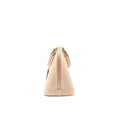 Very slight colour transfer on handle, very slight scratches on hardware, one dent on the thin belt, clean inside and out