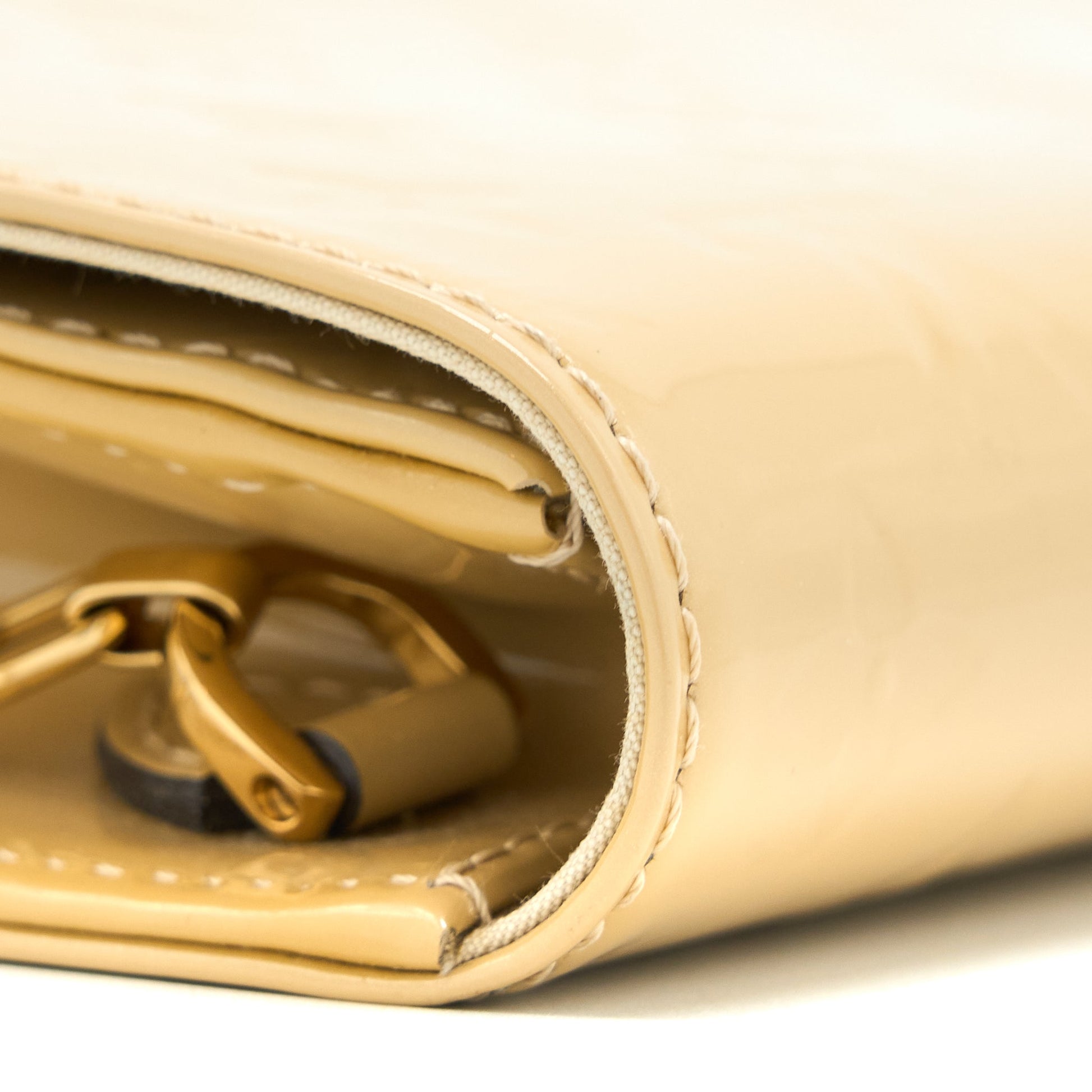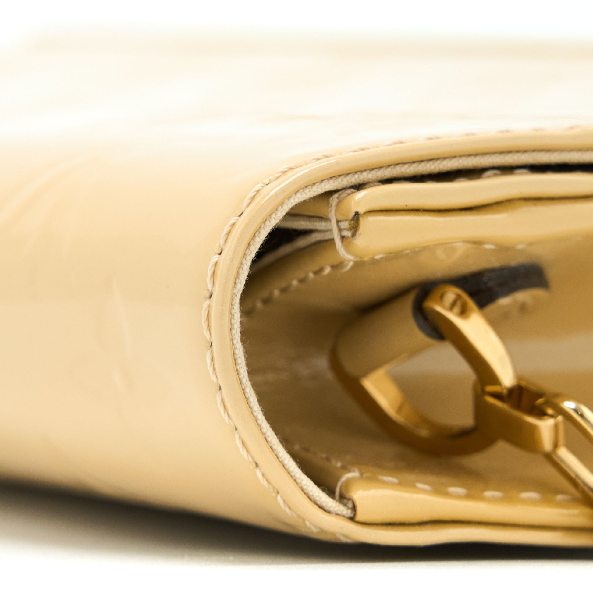 Louis Vuitton Ana Vernis Clutch With Chain Patent Beige GHW