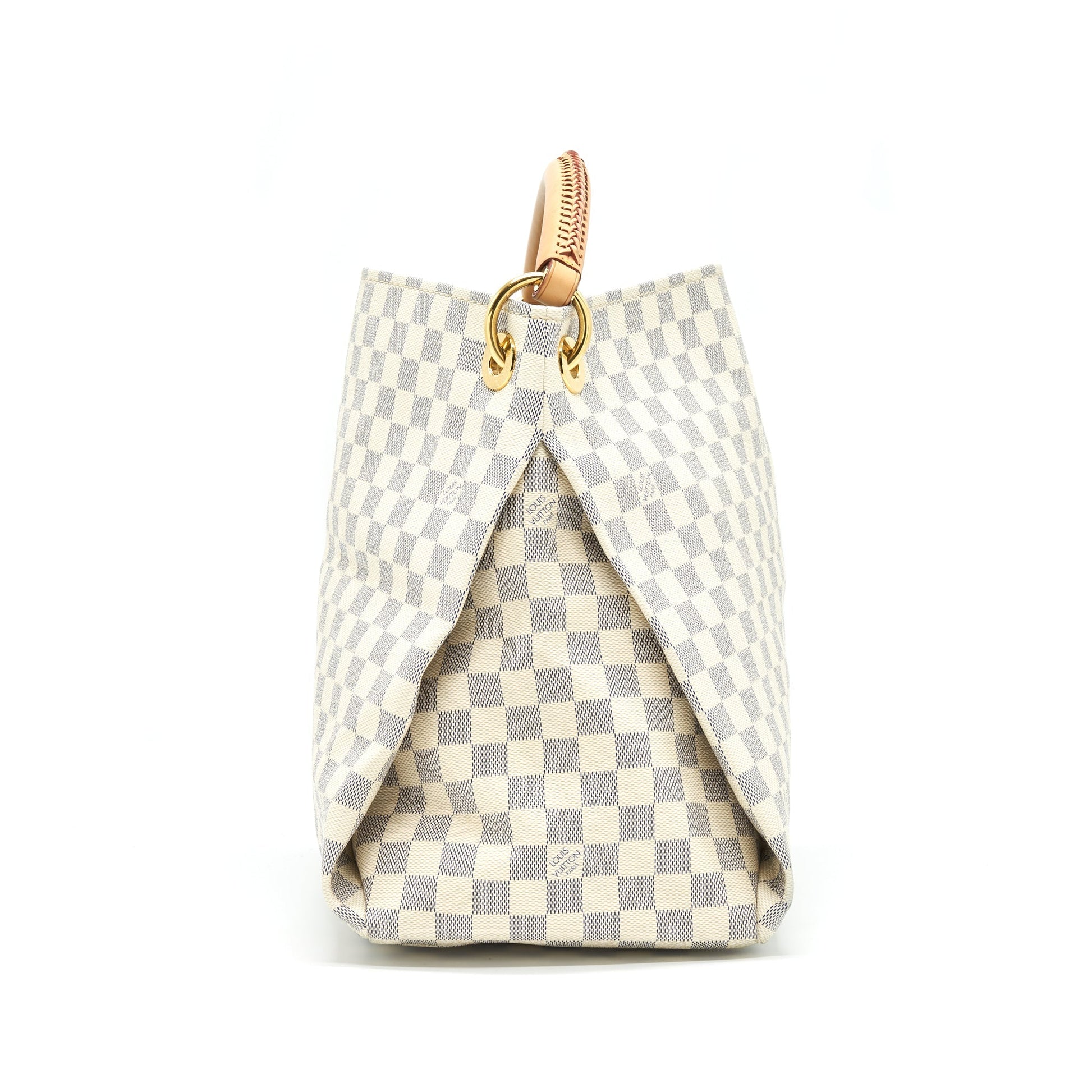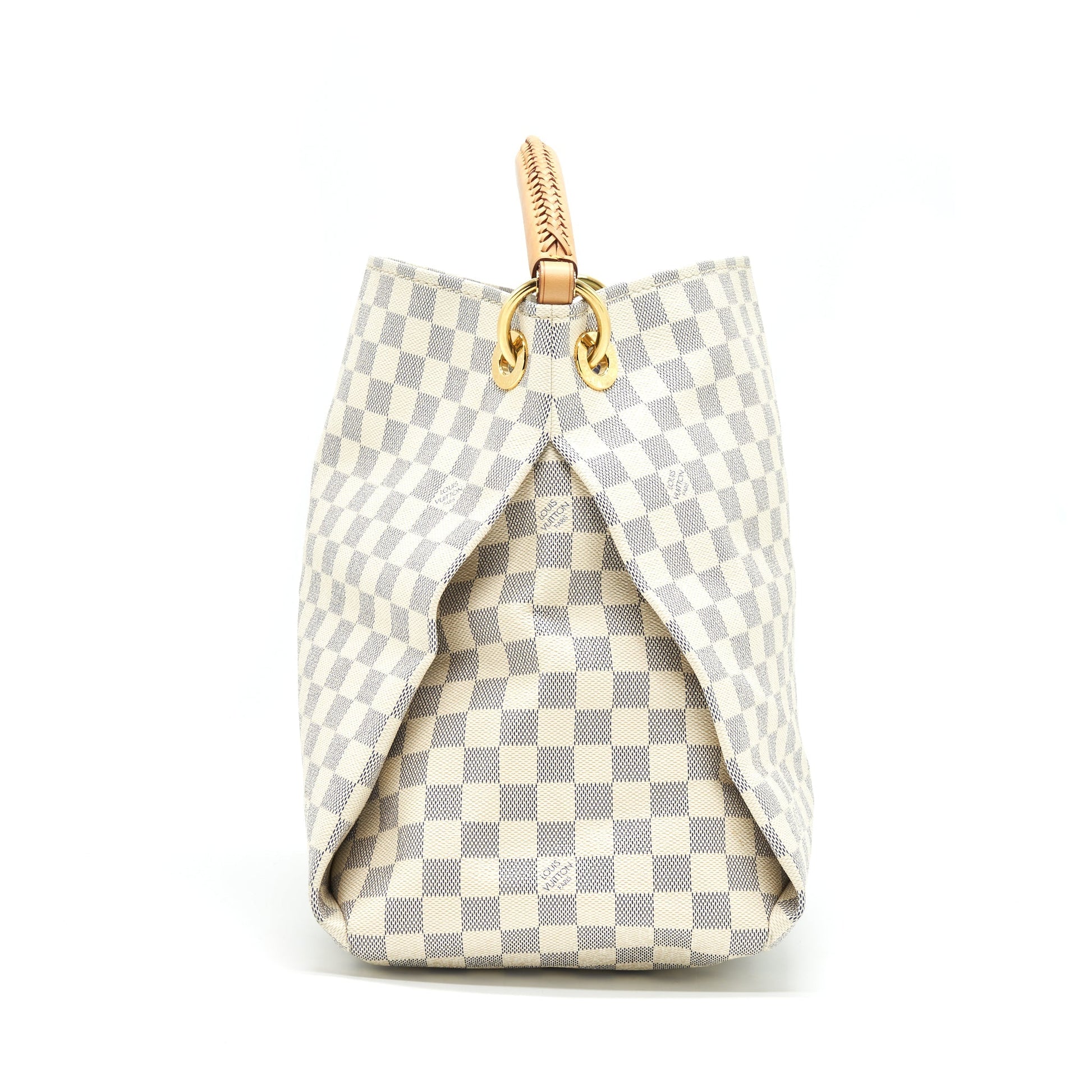Gently Used (This item is in excellent condition with slight rubbing on corners. Slight colour changed on beige leather. Light scratches on feet hardware and on handle. )