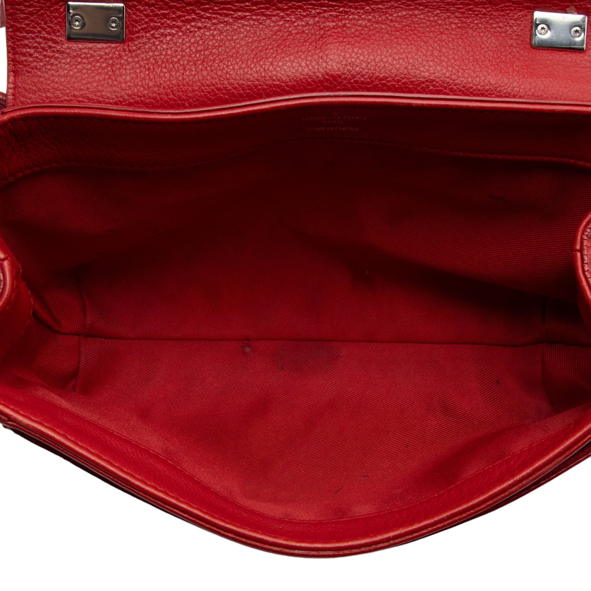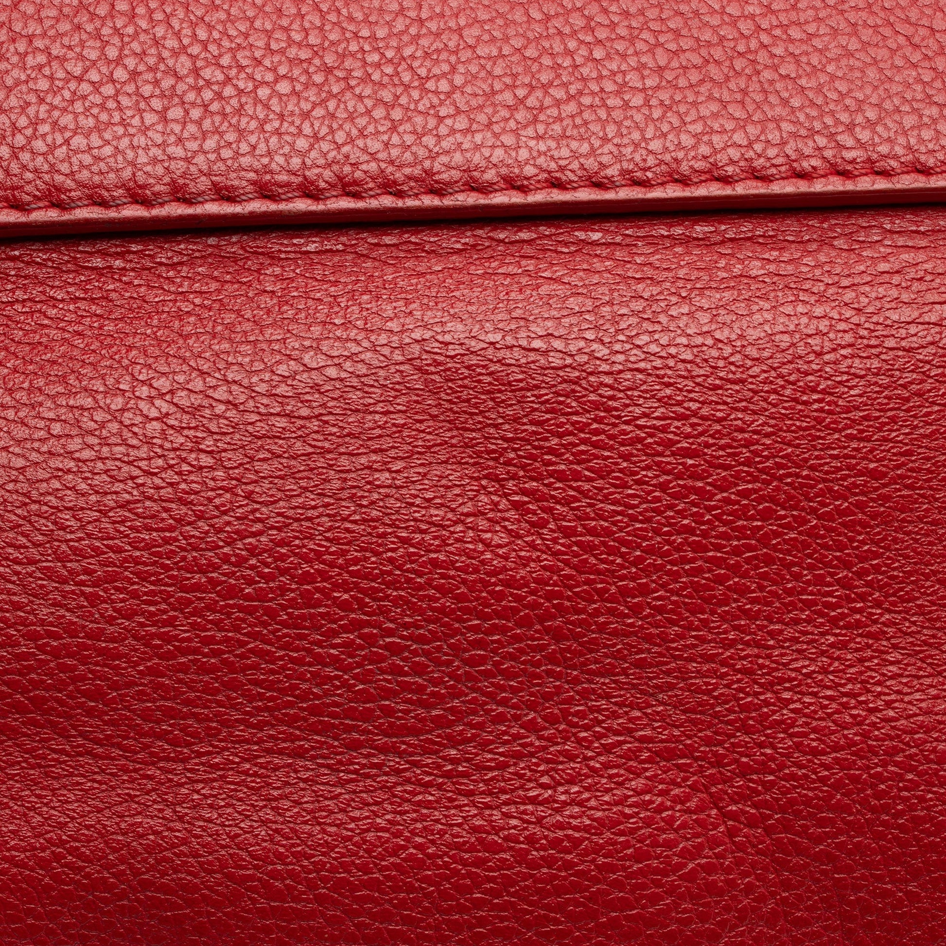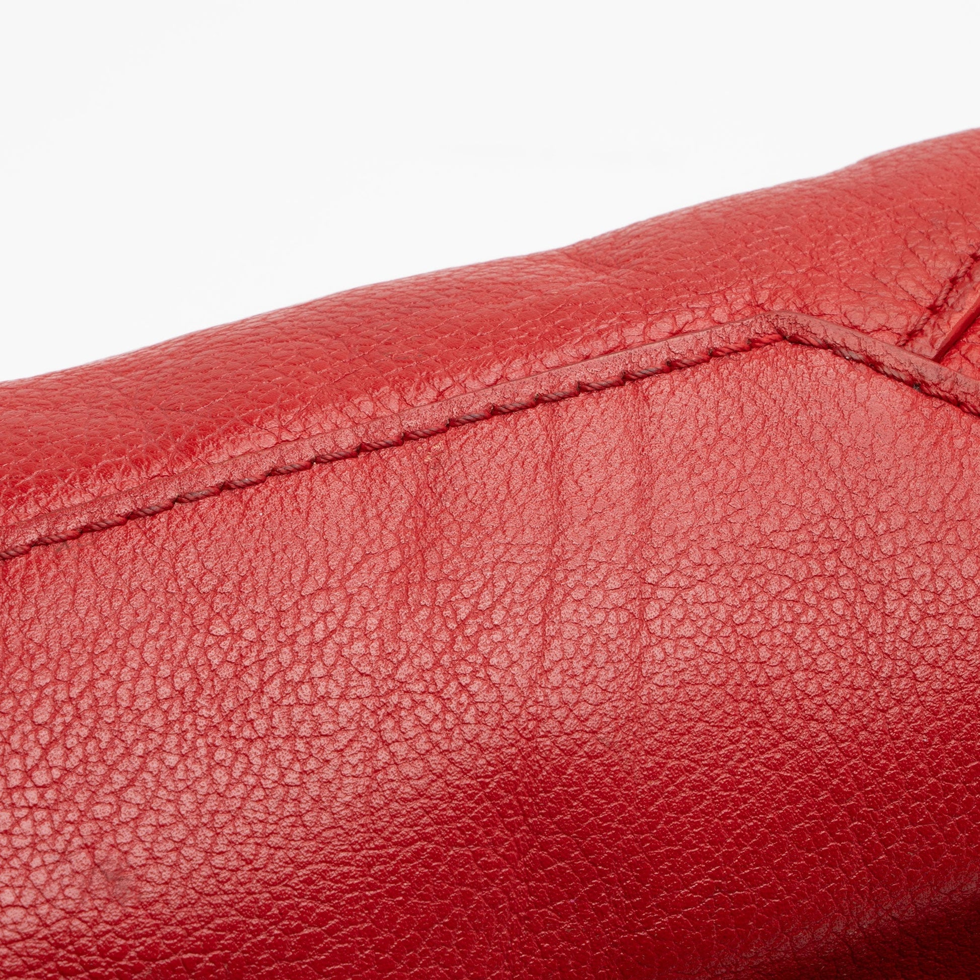 Condition Notes: Loss of structure to exterior. Creasing, scuffs, and light marks throughout exterior. Visible wear to exterior front flap corners. Cracking throughout exterior casing. Light creasing and wear throughout shoulder strap. Moderate surface scratches to hardware. Visible marks and light darkening throughout interior.