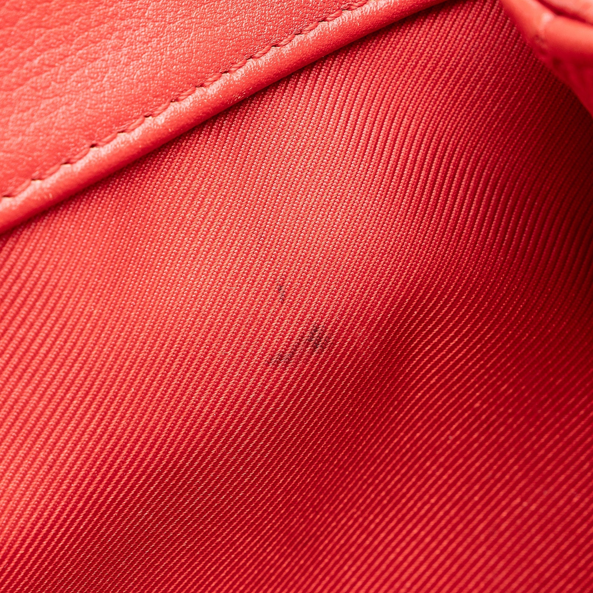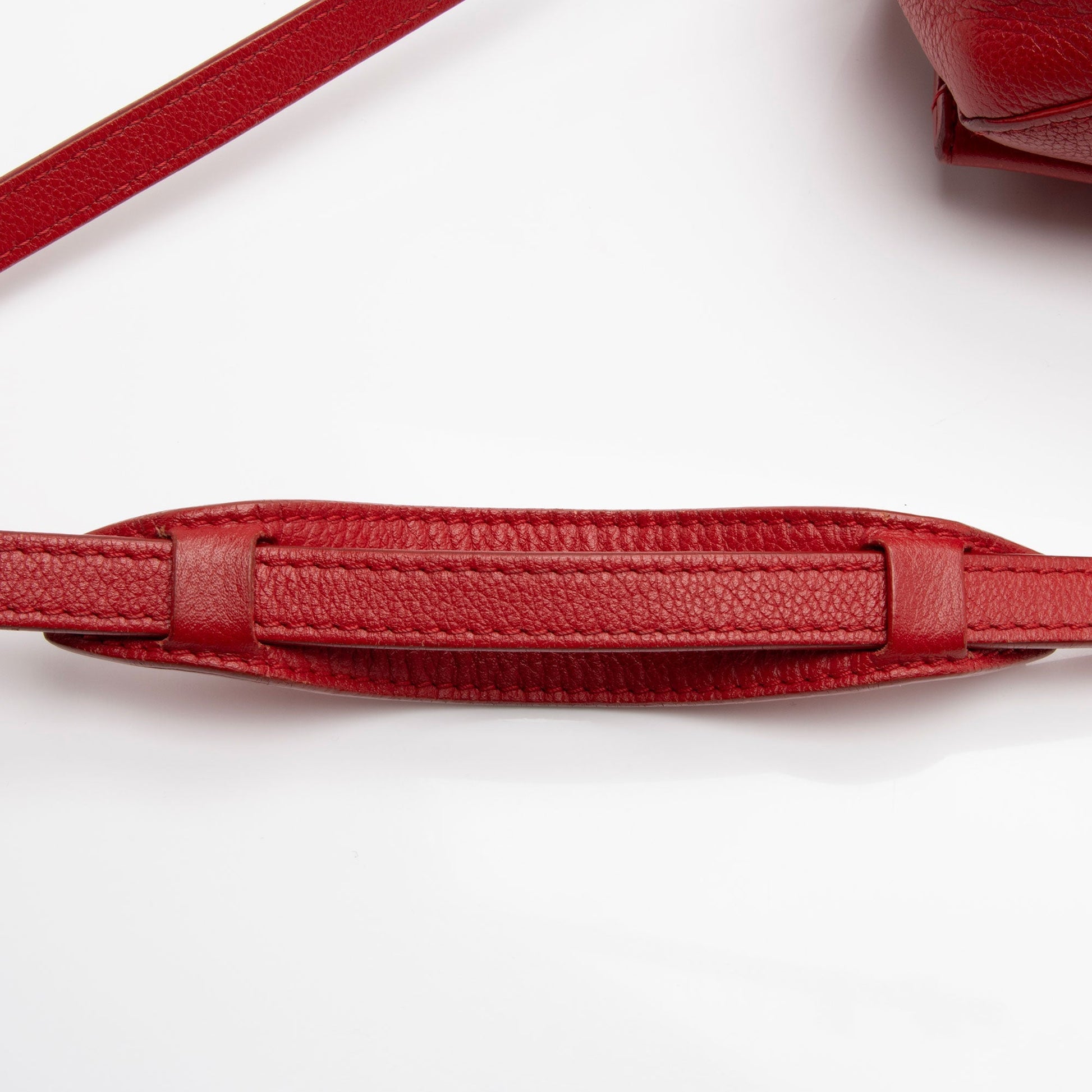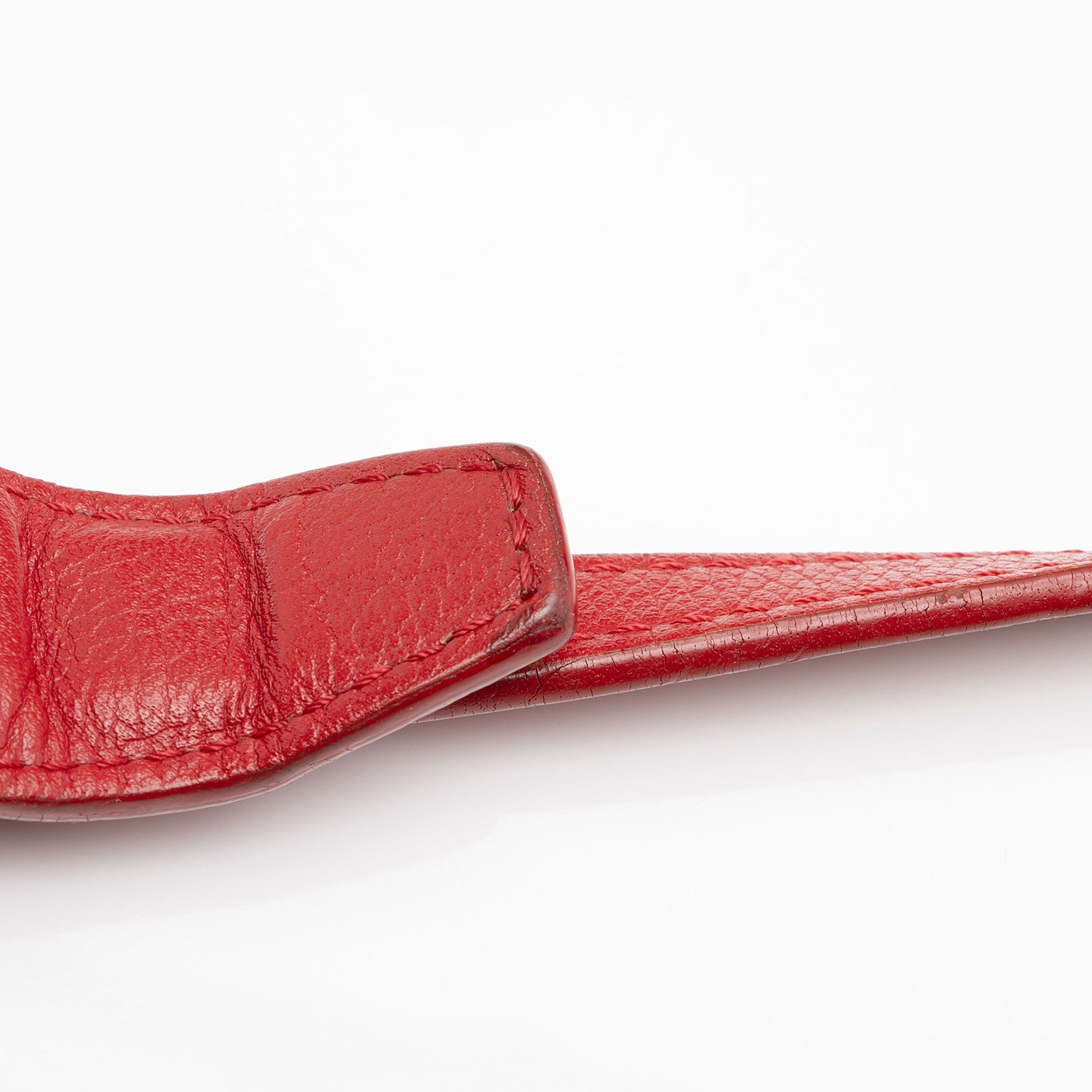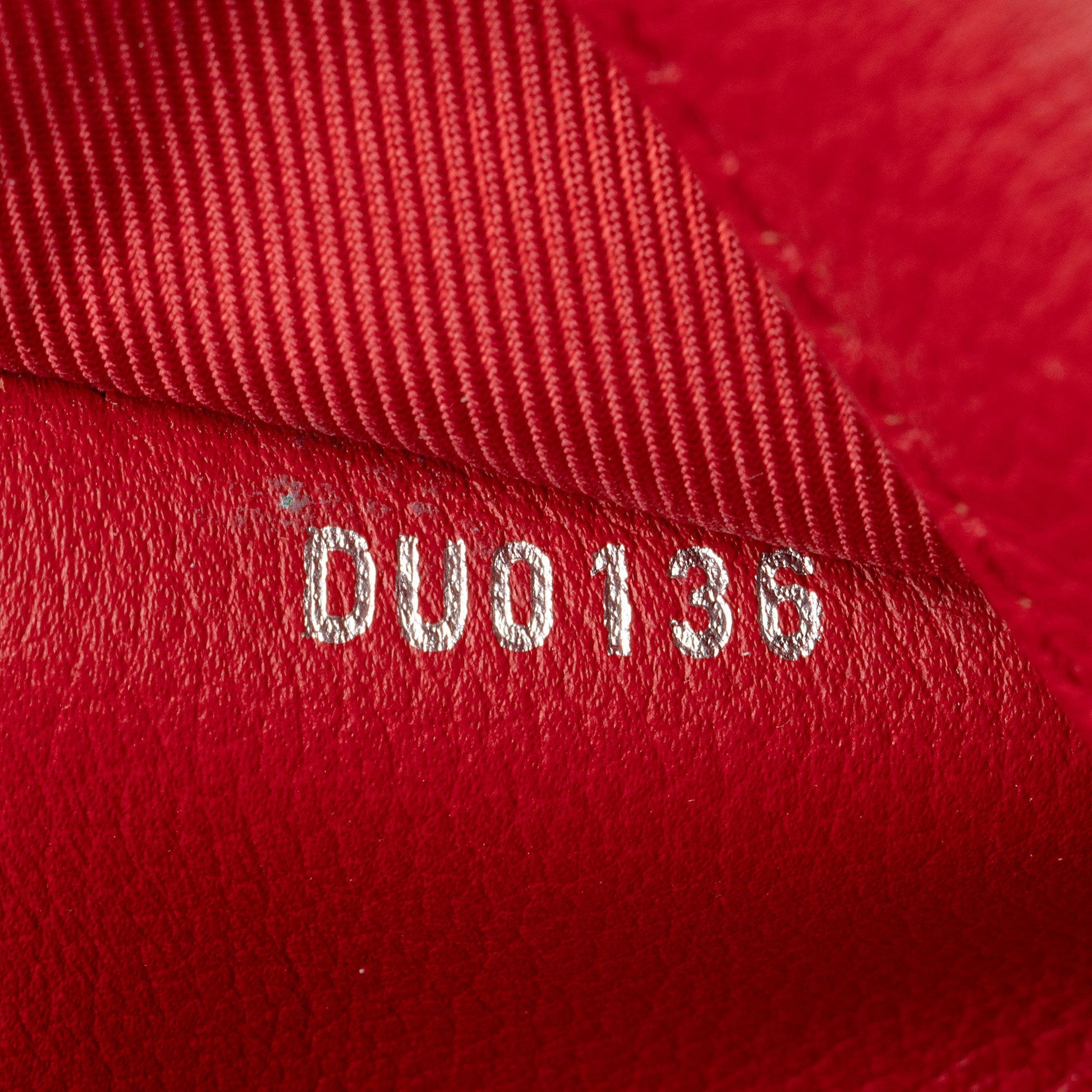 Condition Notes: Loss of structure to exterior. Creasing, scuffs, and light marks throughout exterior. Visible wear to exterior front flap corners. Cracking throughout exterior casing. Light creasing and wear throughout shoulder strap. Moderate surface scratches to hardware. Visible marks and light darkening throughout interior.