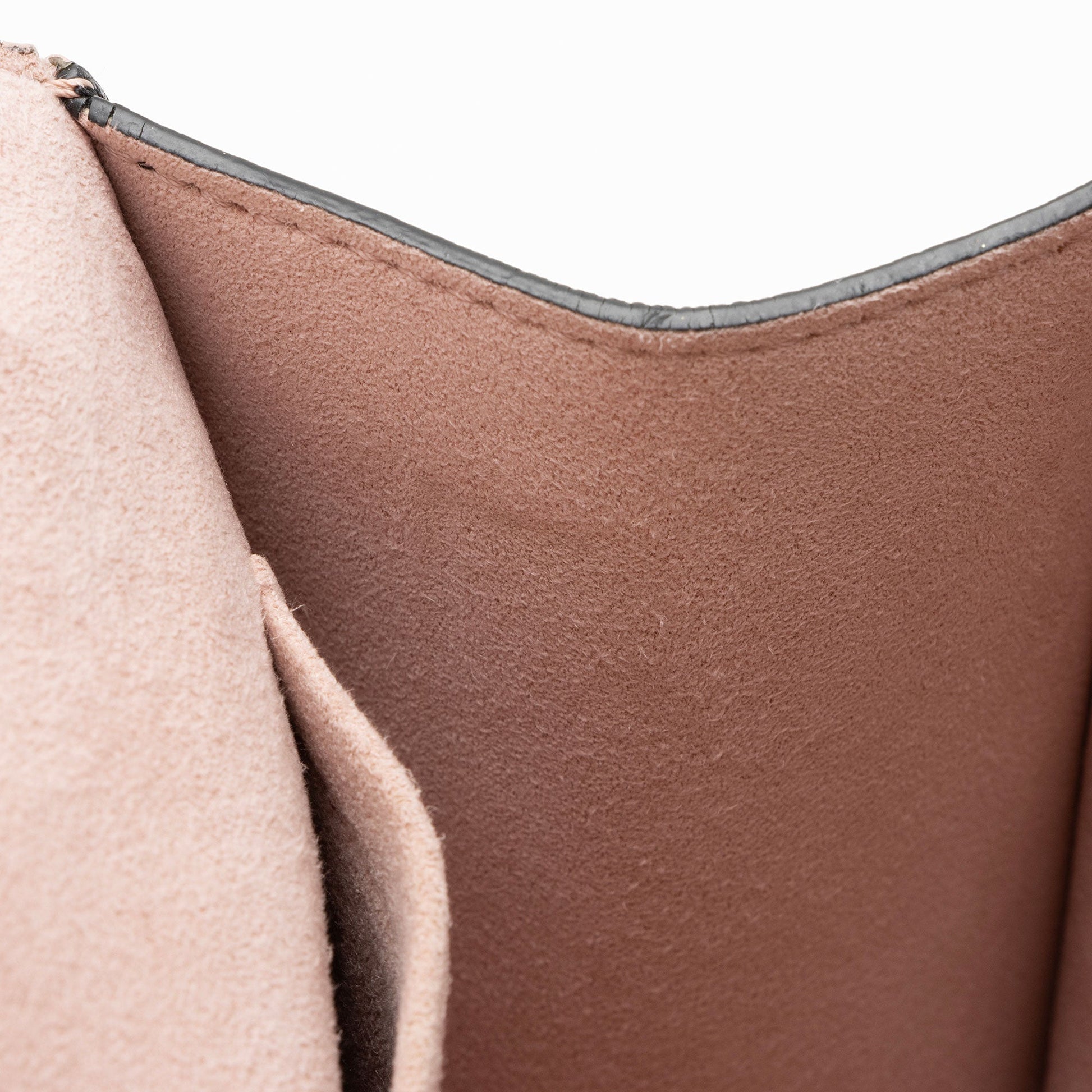 Condition Notes: Cracking and wear to exterior bottom corners. Light loss of structure throughout exterior. Light darkening and marks throughout exterior. Moderate surface scratches to front logo closure. Moderate marks, darkening, and wear throughout interior.