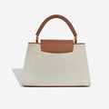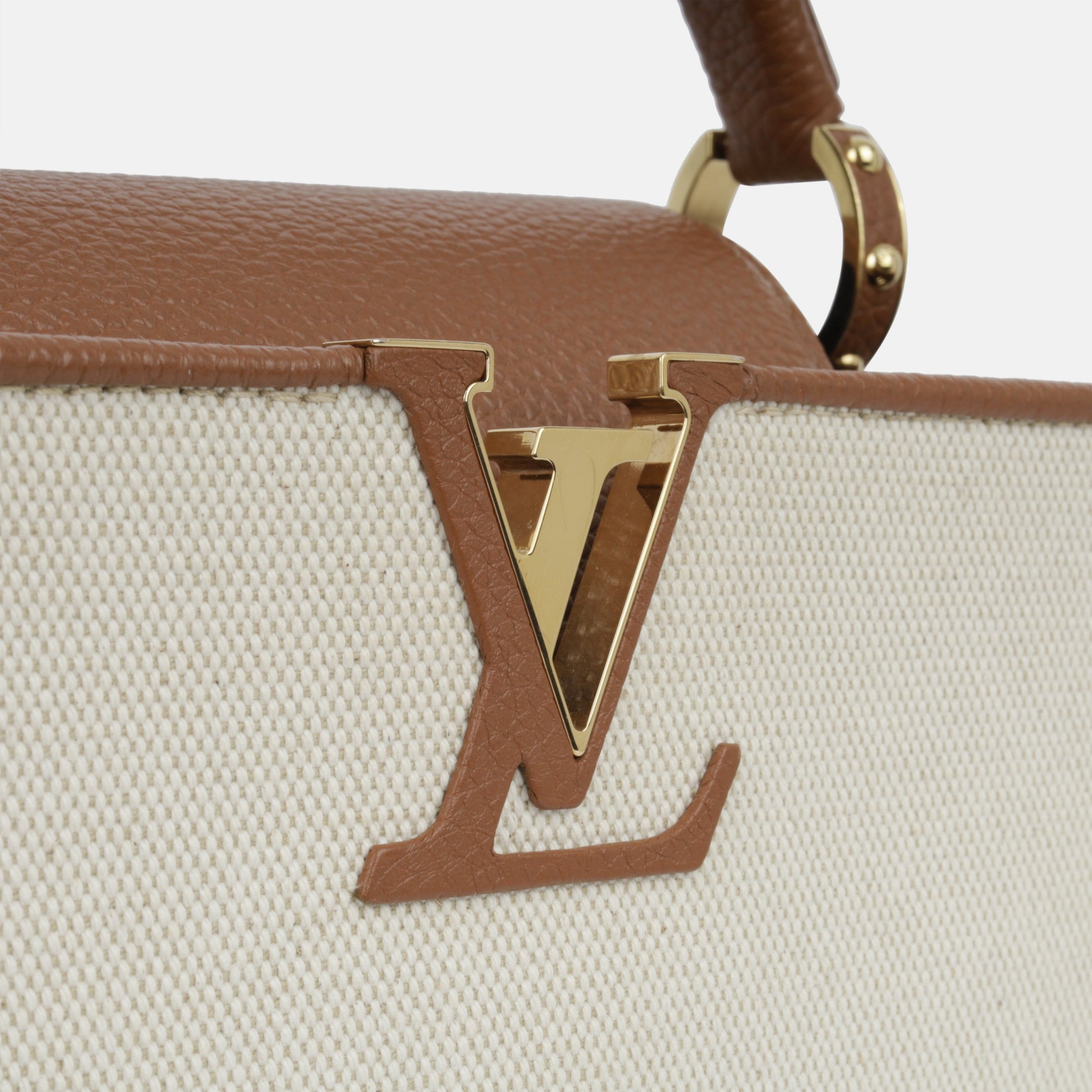 The Capucines MM by Louis Vuitton is the perfect city chic bag. With modern lines and bold statement colours, this will stand out from the crowd. The Capucines line takes its name from the Rue des Capucines in Paris, where Louis Vuitton opened his first store in 1854. Wear the flap on the outside to show the monogram flower, or tuck the flap into the top compartment to reveal the LV initials in stunning silver hardware.