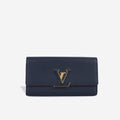 The Capucines Wallet by Louis Vuitton is the perfect mini edition of the ever so popular Capucines range. Exuding luxury and femininity, all the items feature structure and an intricate design. This particular wallet is crafted from textured leather and gold hardware, featuring the iconic Capucines LV leather covered emblem.